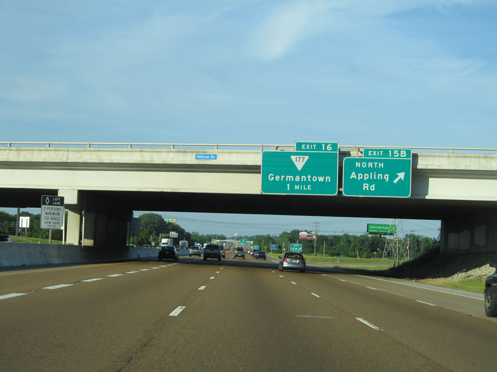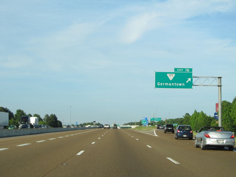 Interstate 40 East at Exit 16: SR 177 - Germantown (Photo taken 5/23/15).