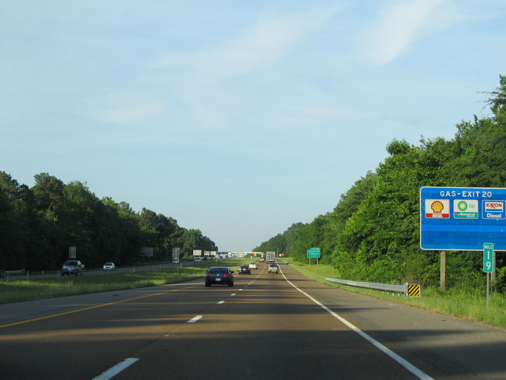 Interstate 40 East approaching Exit 20 - 1 mile. (Photo taken 5/23/15).