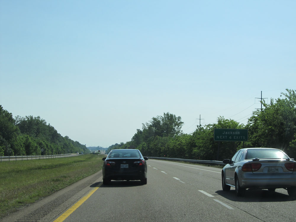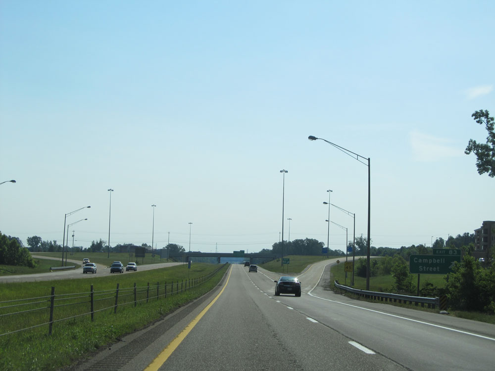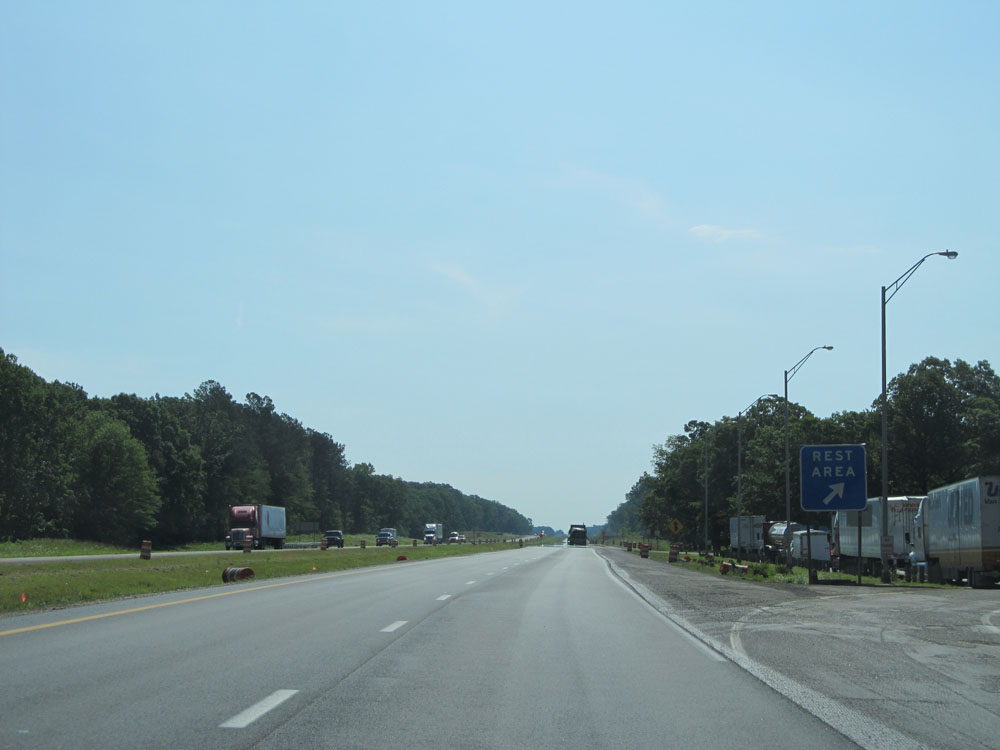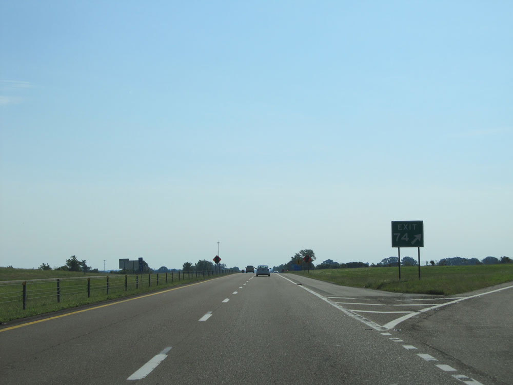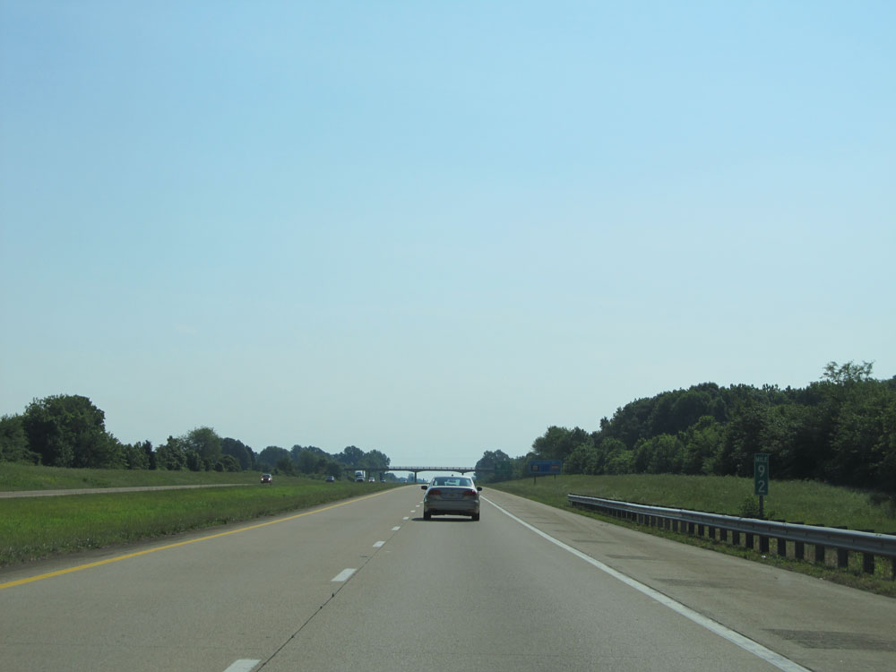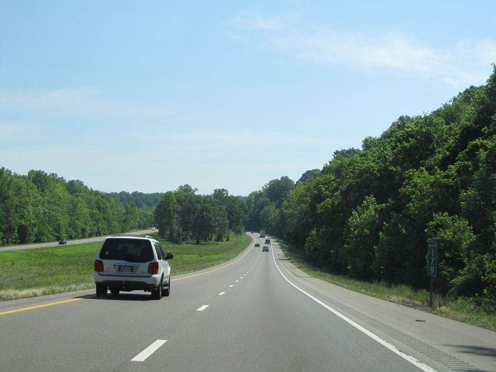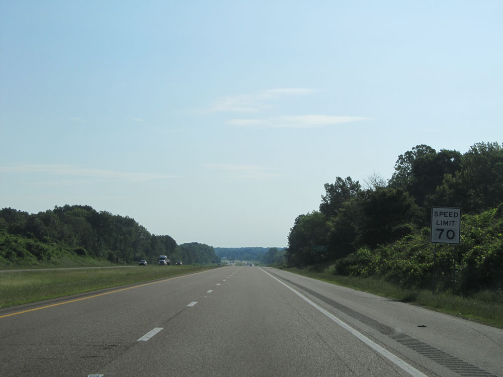 East of Exit 3, the speed limit increases to 65 mph for automobiles and remains 55 mph for trucks. The 55 mph truck speed limit remains in effect until we leave Shelby County.