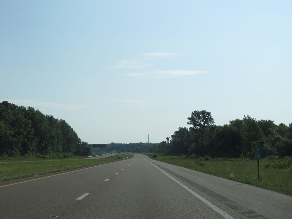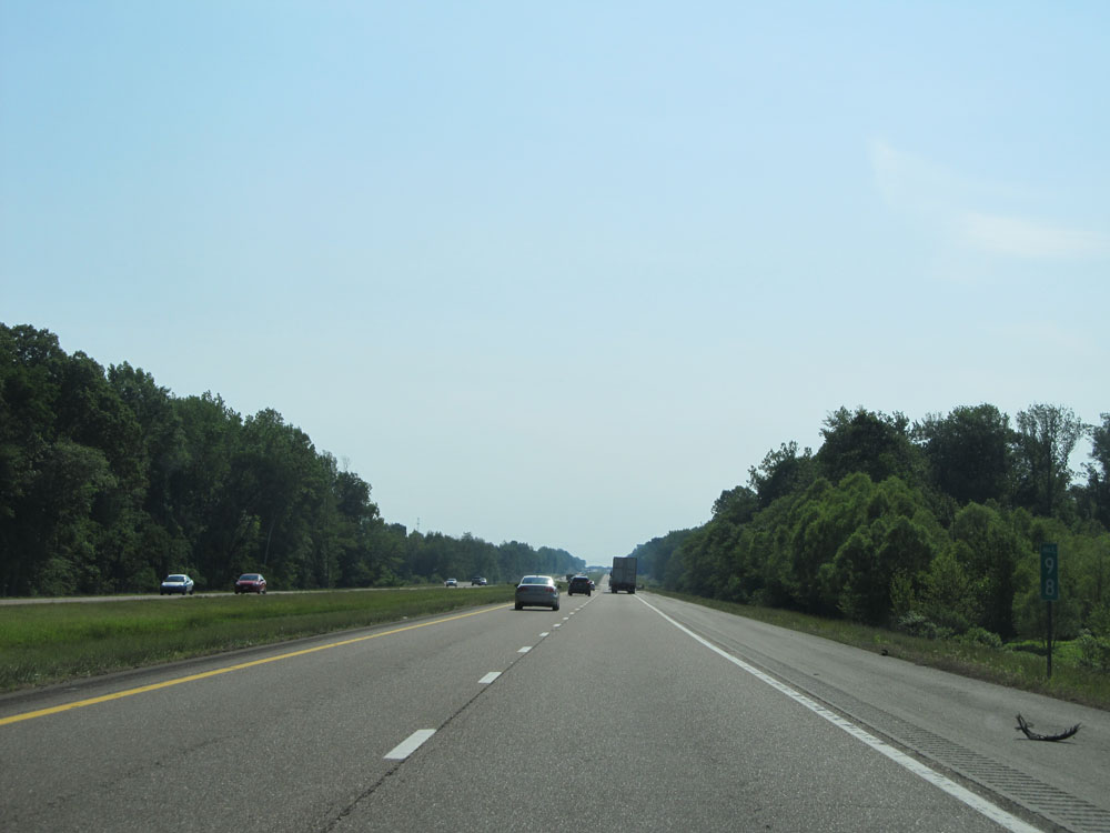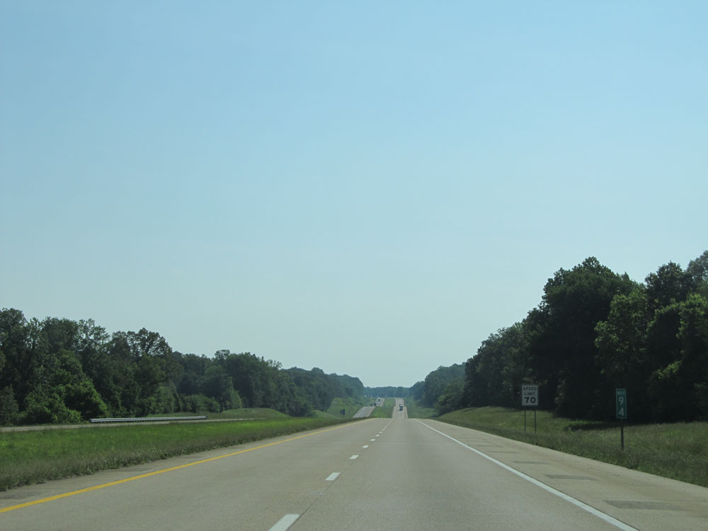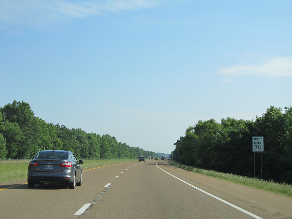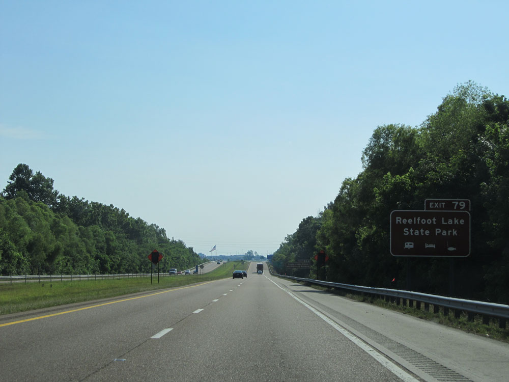 Interstate 40 East entering Hatchie National Wildlife Refuge at mile marker 53. (Photo taken 5/24/15).