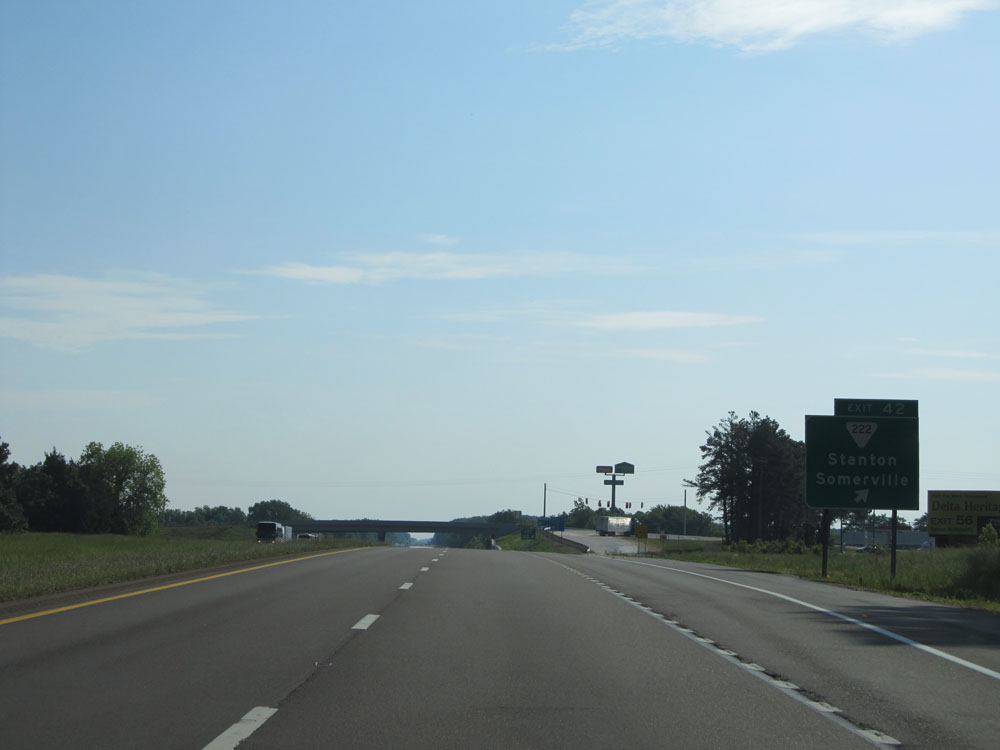 Interstate 40 East at Exit 42: SR 222 - Stanton / Somerville (Photo taken 5/24/15).