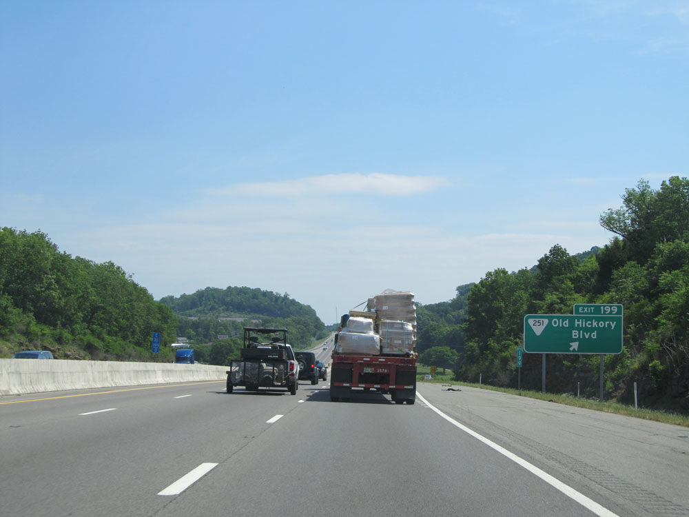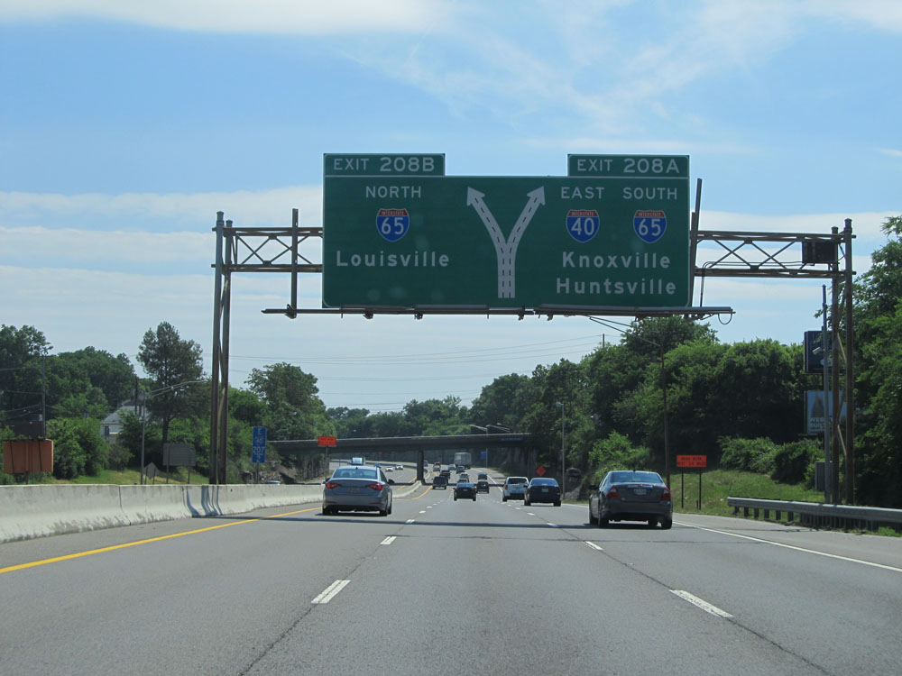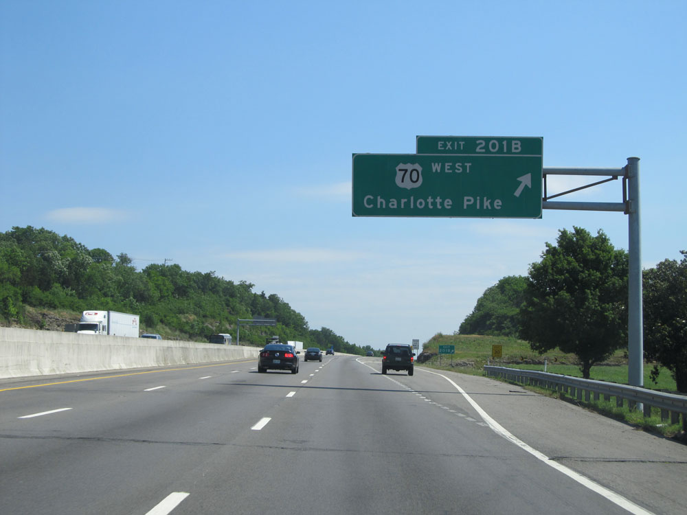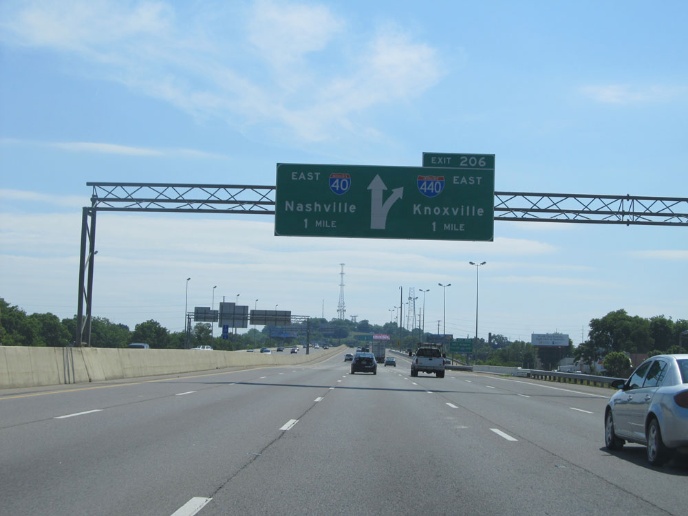 Interstate 40 East at Exit 12C: Interstate 40 East - Nashville. Staying straight here will take you onto Interstate 240 West, at its eastern terminus. (Photo taken 5/23/15).