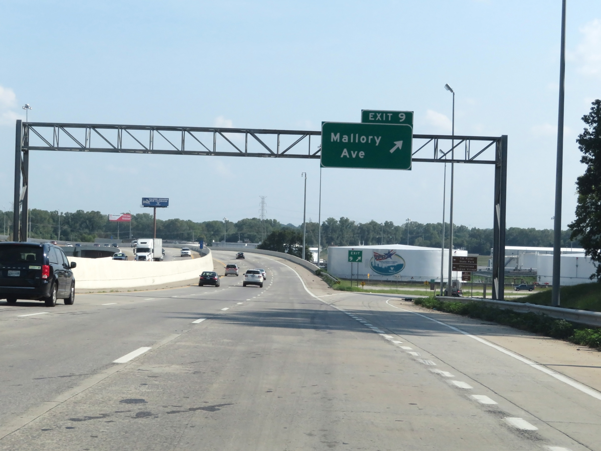 Interstate 55 South at Exit 9: Mallory Ave (Photo taken 8/12/19). |