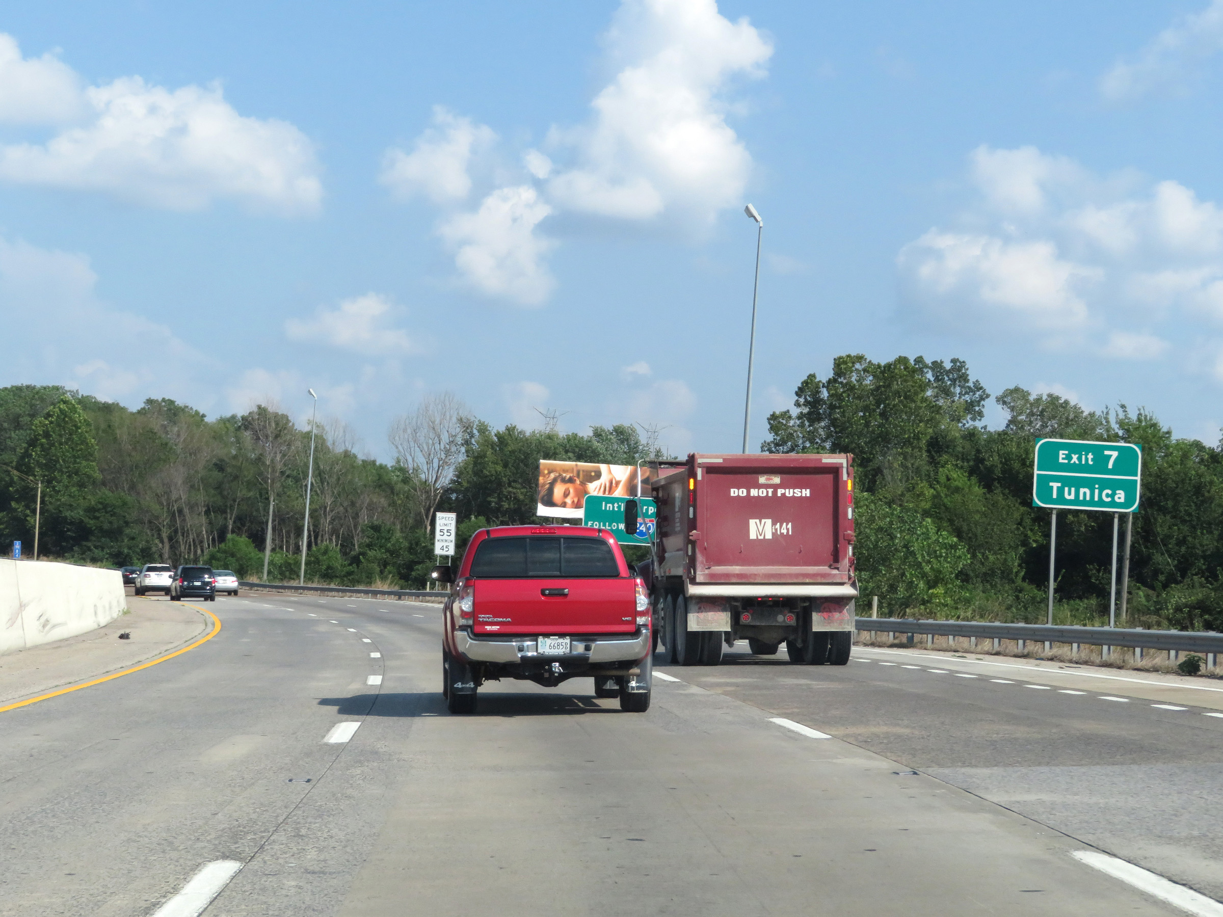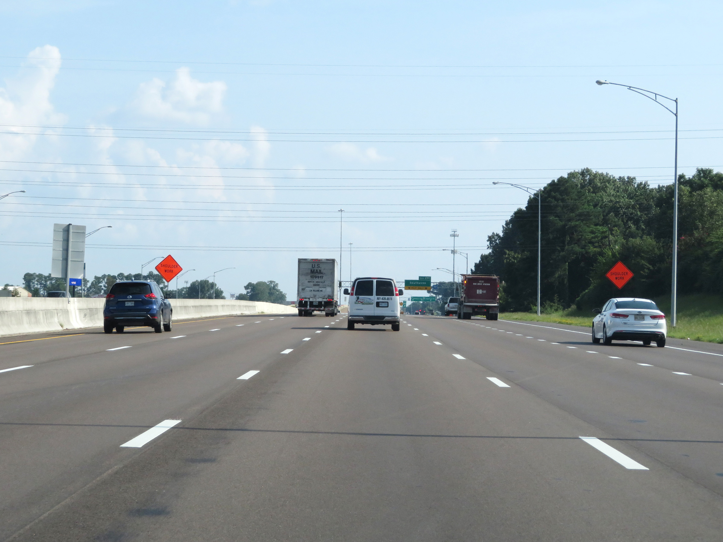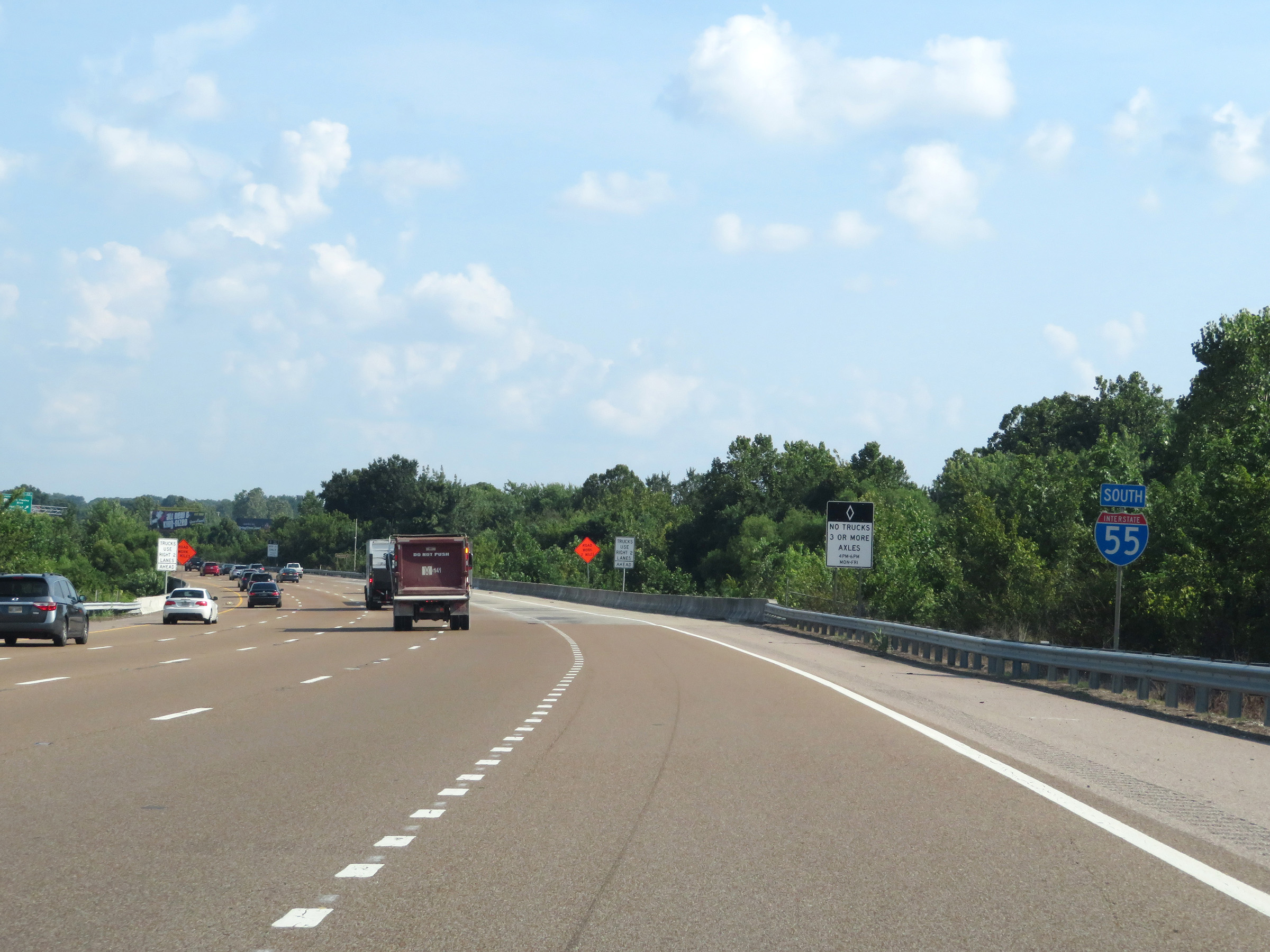 Interstate 55 South as it prepares to leave Tennessee to enter Mississippi. (Photo taken 8/12/19). |