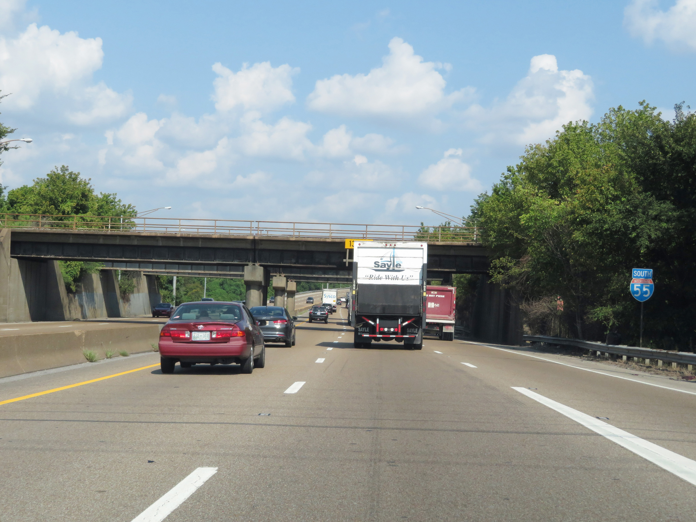 View on Interstate 55 South at mile marker 3.2. (Photo taken 8/12/19). |