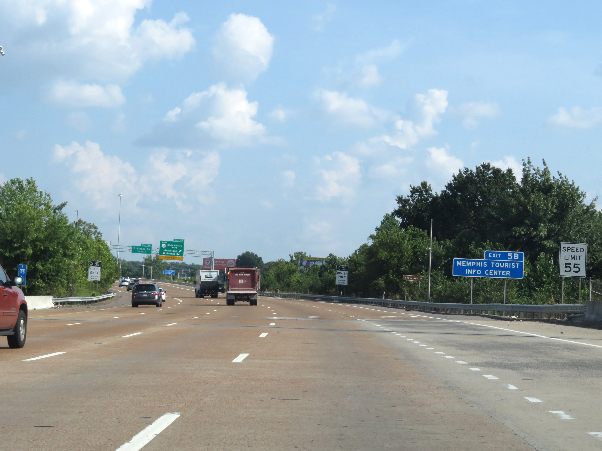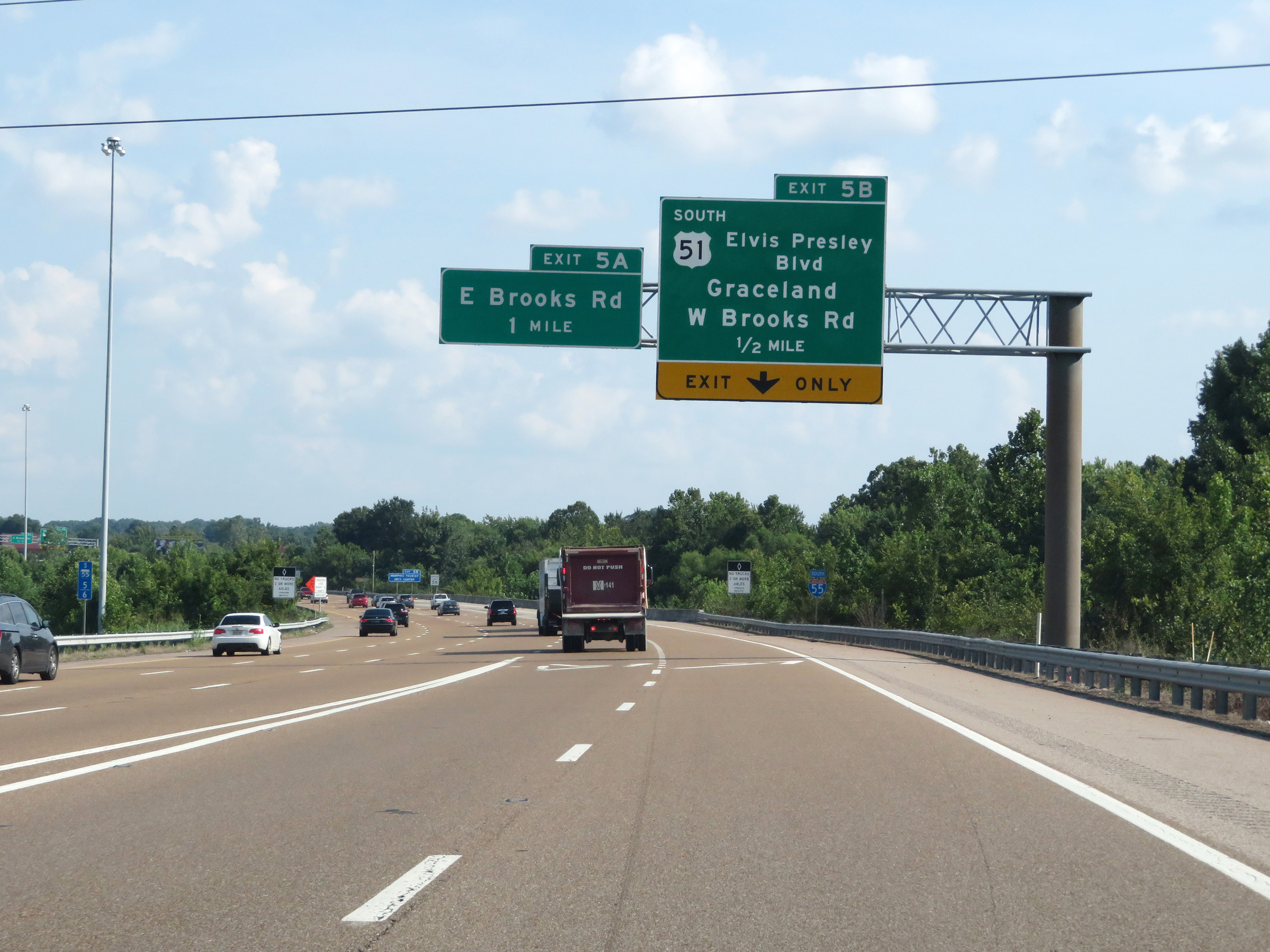 Interstate 55 South at Exit 5B: US 51 South (Elvis Presley Blvd) - Graceland / West Brooks Rd (Photo taken 8/12/19). |