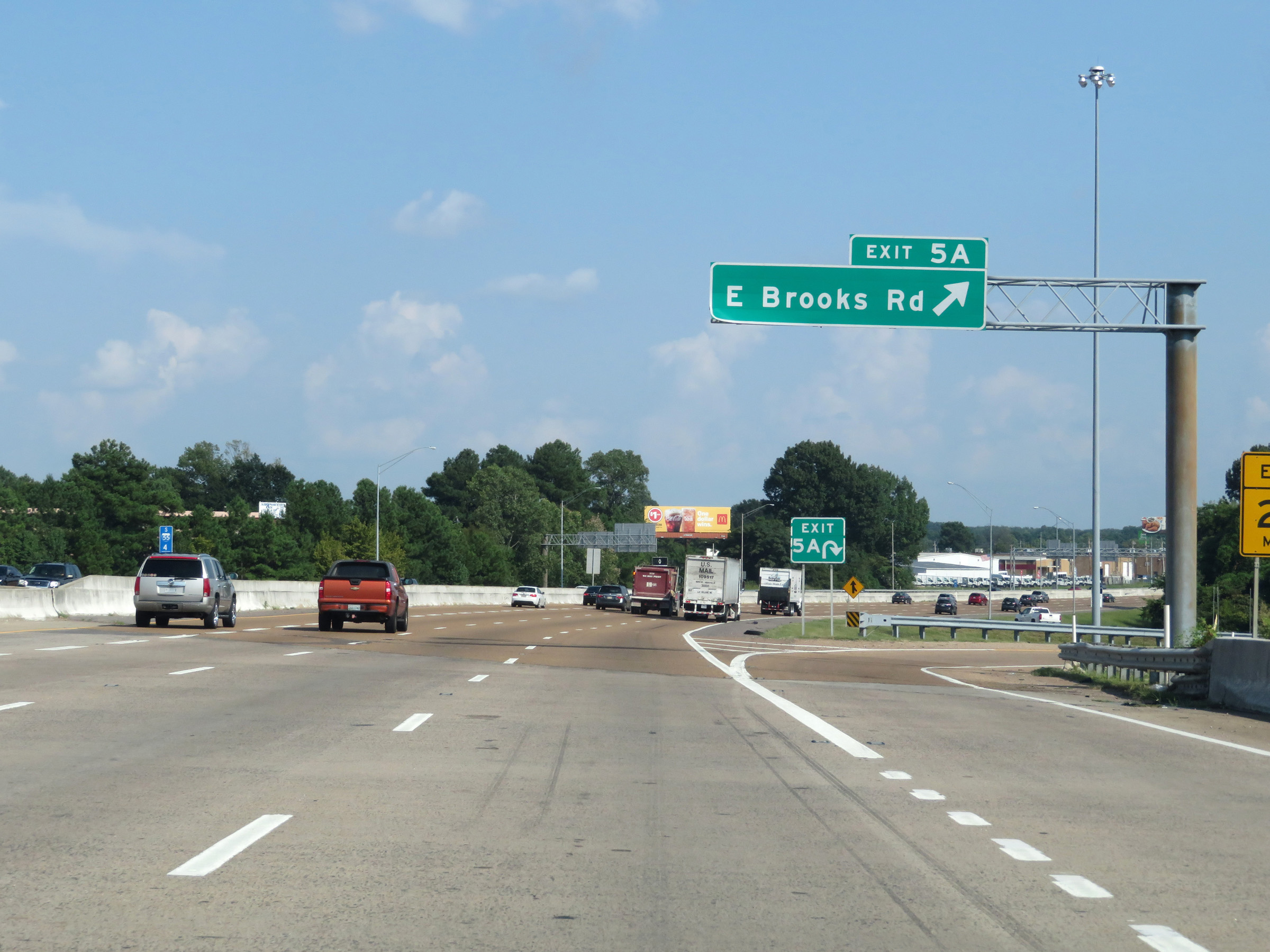 Interstate 55 South at Exit 5A: East Brooks Rd (Photo taken 8/12/19). |