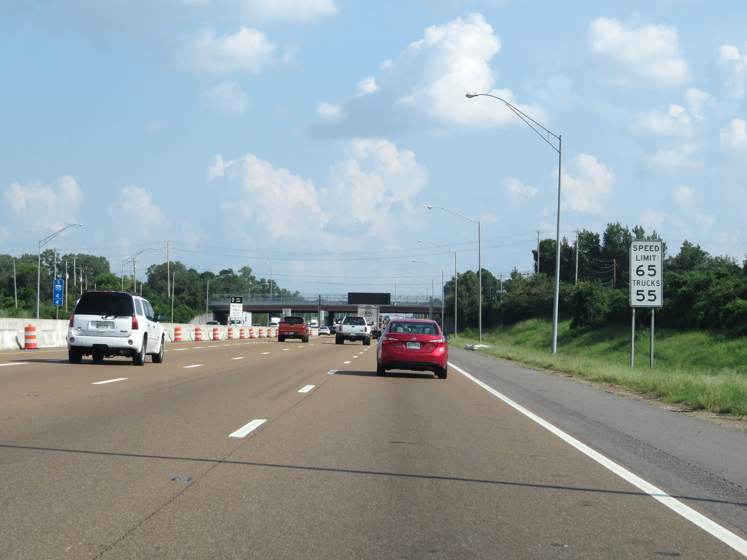 The speed limits on Interstate 55 South remain 55 mph maximum and 45 mph minimum. (Photo taken 8/12/19). |