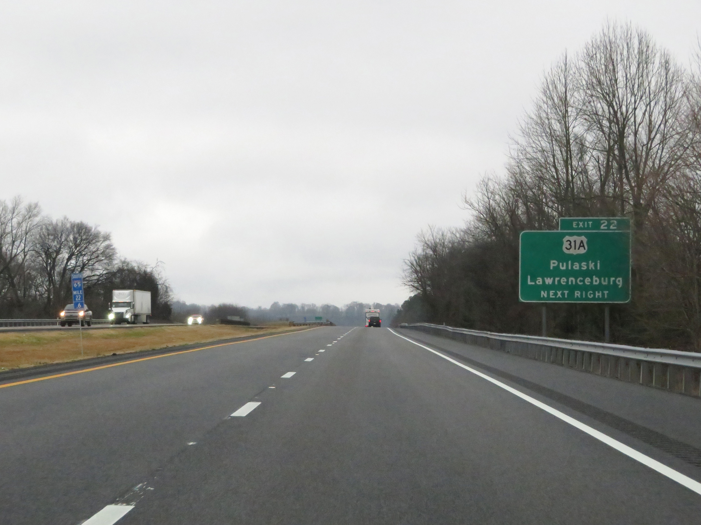 Interstate 65 South at Exit 46: US 412 / TN 99 - Columbia / Chapel Hill (Photo taken 12/14/20). |