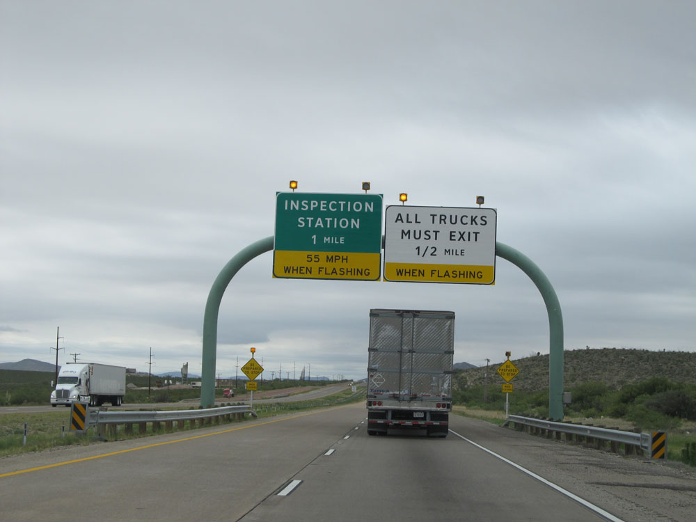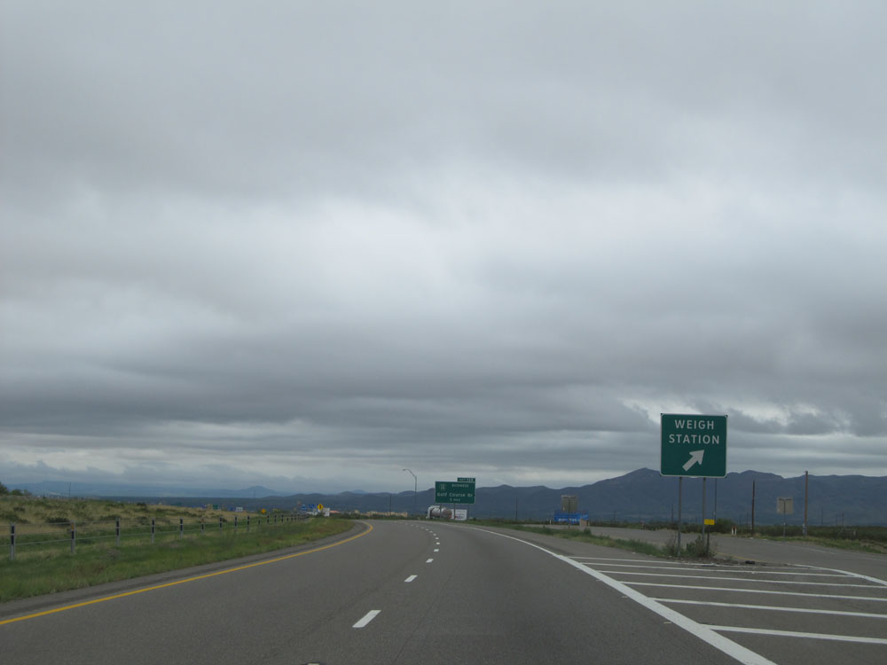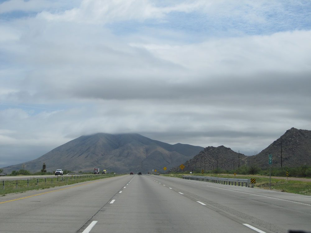 Interstate 10 East approaching the first of a few steep (7%) grades over the next several miles. Although these grades are short (less than a mile), 7% is still very steep and can cause you to pick up downhill speed rather quickly! (Photo taken 5/21/15).