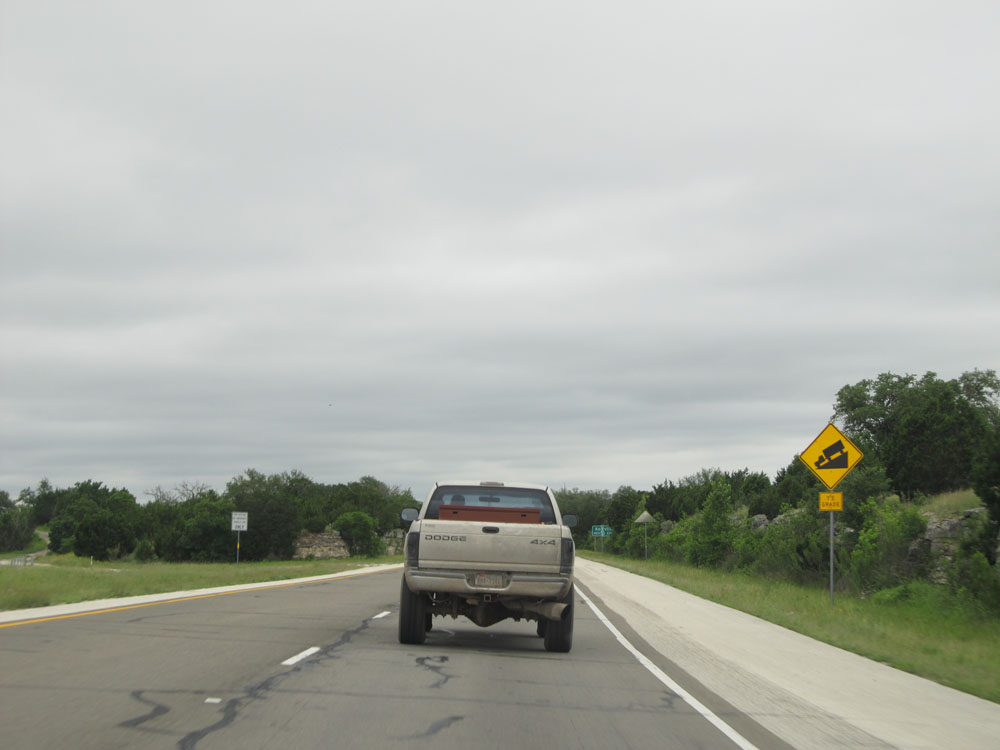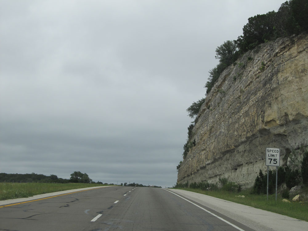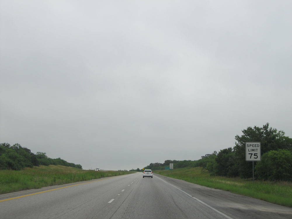 Approaching the Gillespie County line, the speed limit finally drops to 75 mph. 80 mph speed limit, we had fun while you lasted, and you will be missed dearly! (Photo taken 5/21/15).