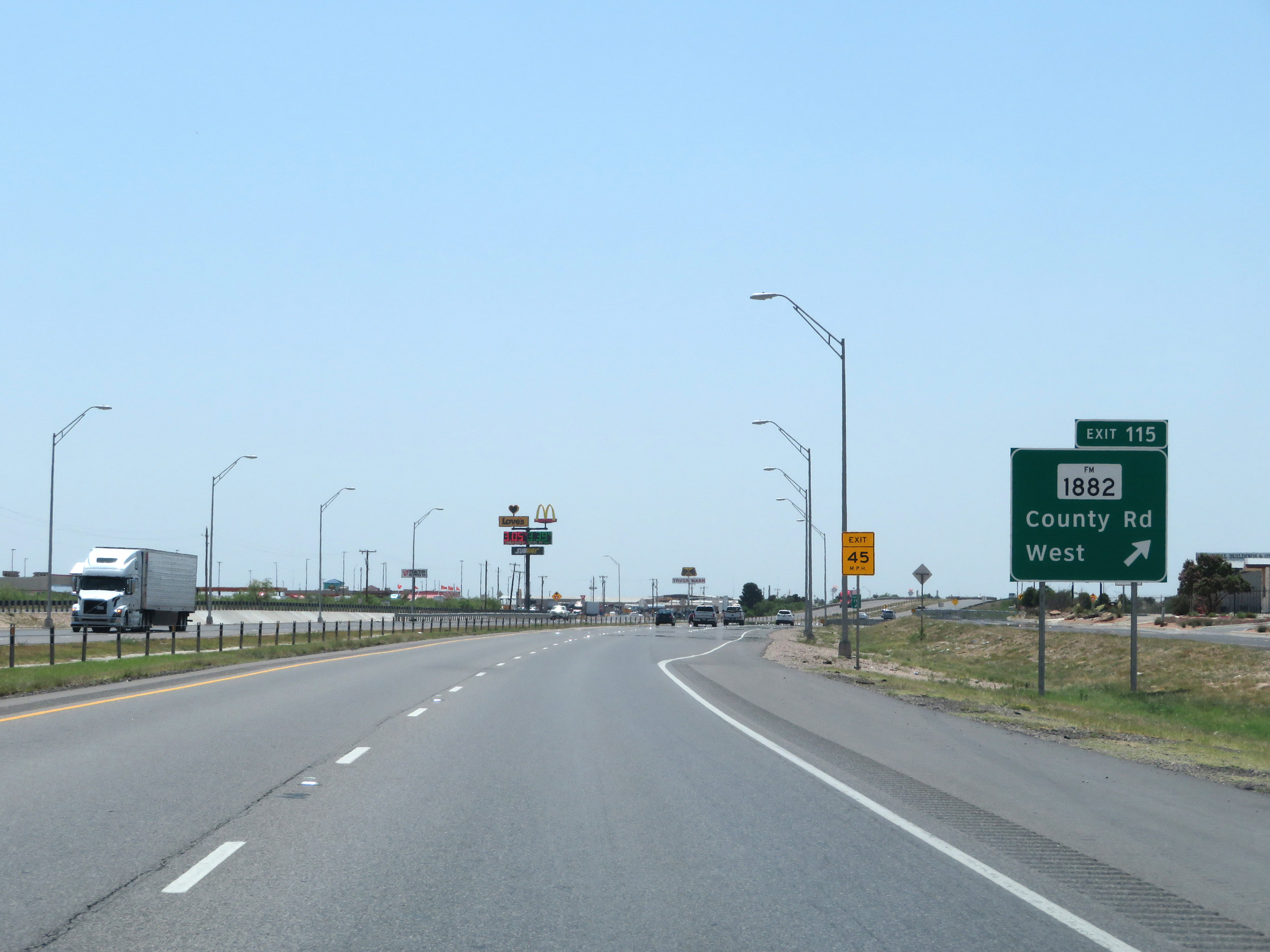 Interstate 20 West at Exit 115: FM 1882 - County Rd West (Photo taken 5/19/18). |