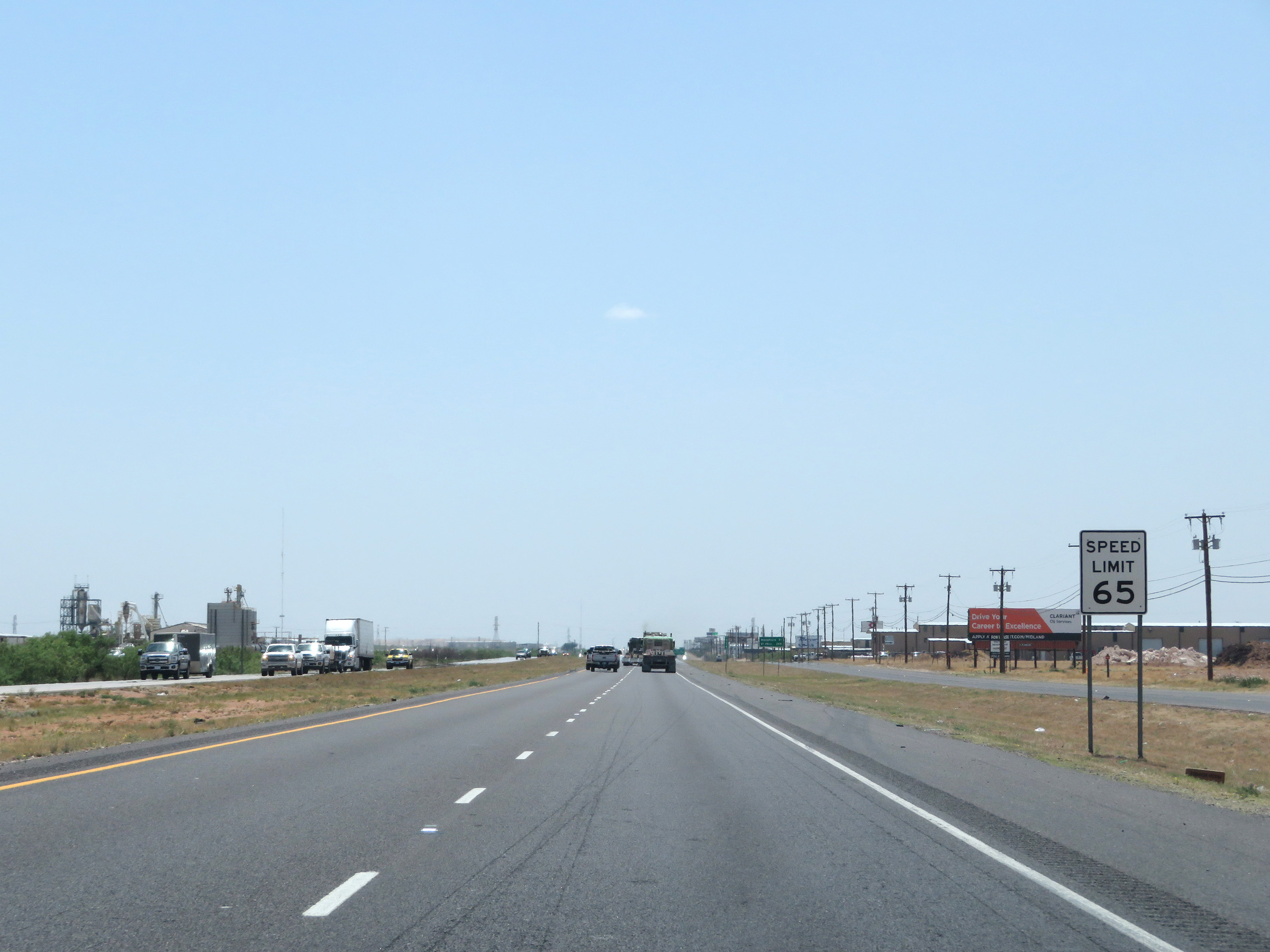 The speed limit remains 65 mph on Interstate 20 West through the Odessa area. (Photo taken 5/19/18). |