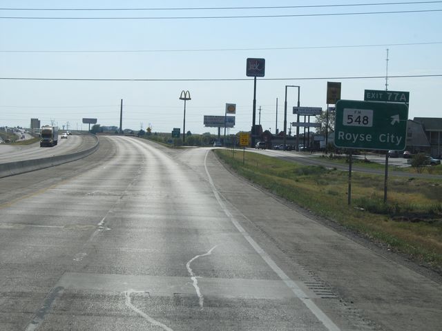 |  | Interstate 30 West at Exit 77A: FM 548 - Royse City  (Photo taken 9/21/11). |
