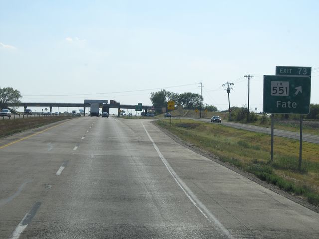 |  | Interstate 30 West at Exit 73: FM 551 - Fate  (Photo taken 9/21/11). |