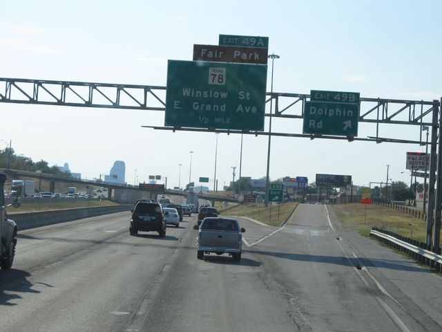 |  | Interstate 30 West at Exit 47C: Fair Park / 1st Ave  (Photo taken 9/21/11). |