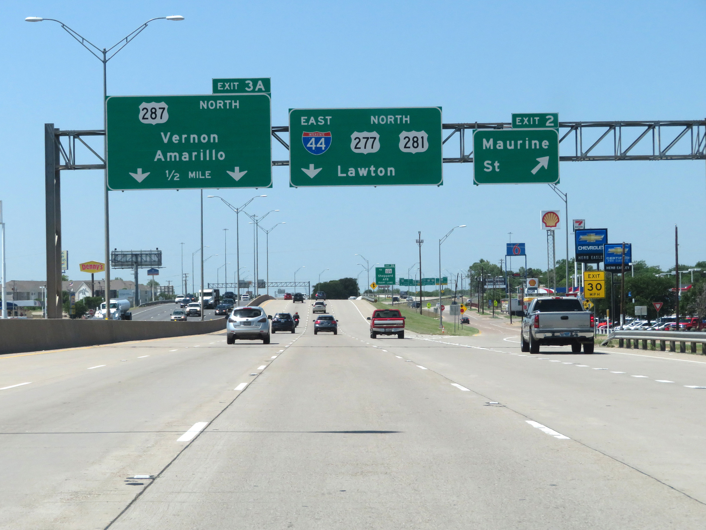 Interstate 44 East at Exit 3B: TX Spur 325 - Sheppard AFB (Photo taken 5/18/18). |