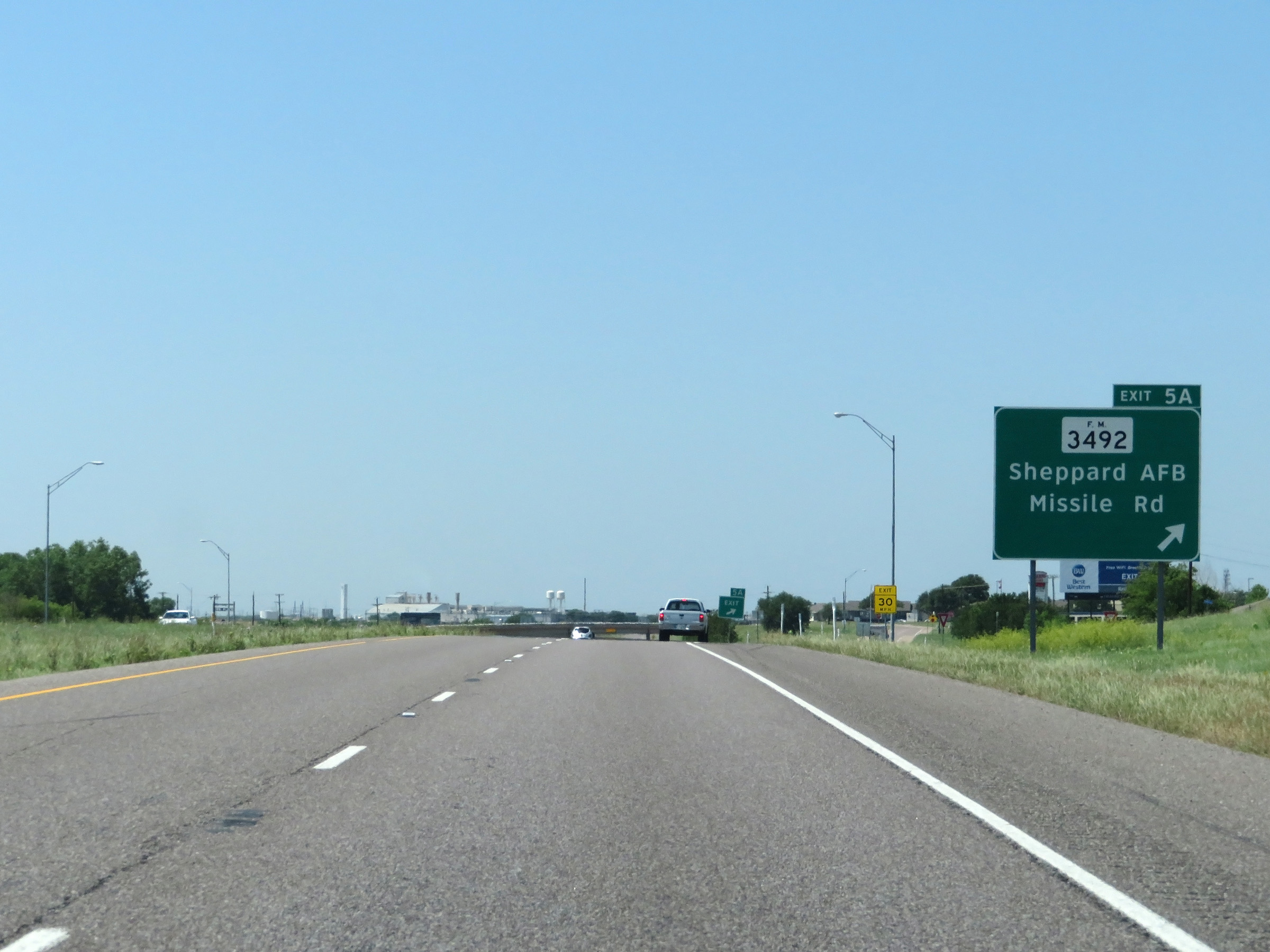 Interstate 44 East at Exit 5A: FM 3492 - Sheppard AFB / Missile Rd (Photo taken 5/18/18). |