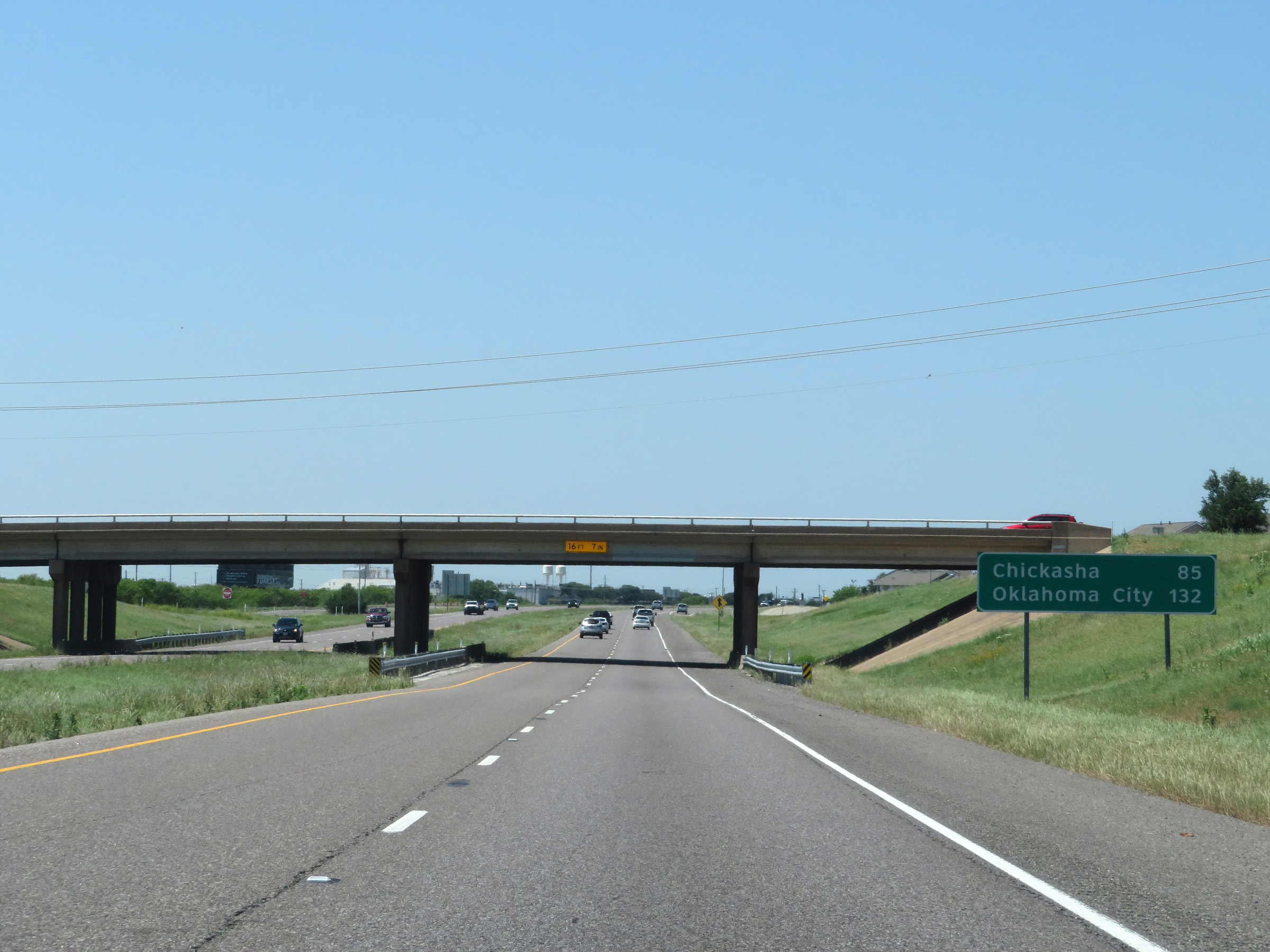 View on Interstate 44 East as it prepares to cross the Red River, which marks the state line between Texas and Oklahoma. (Photo taken 5/18/18). |