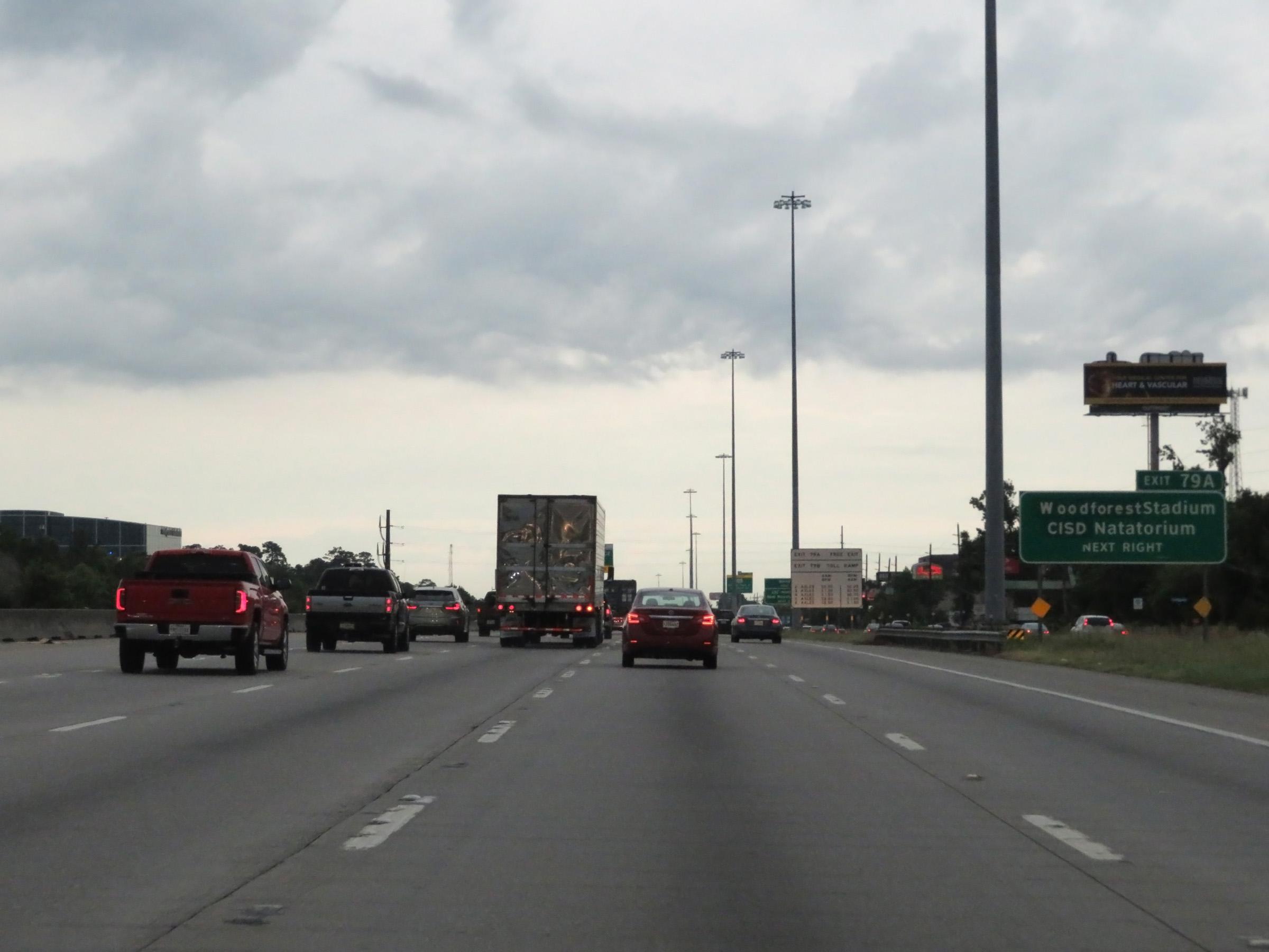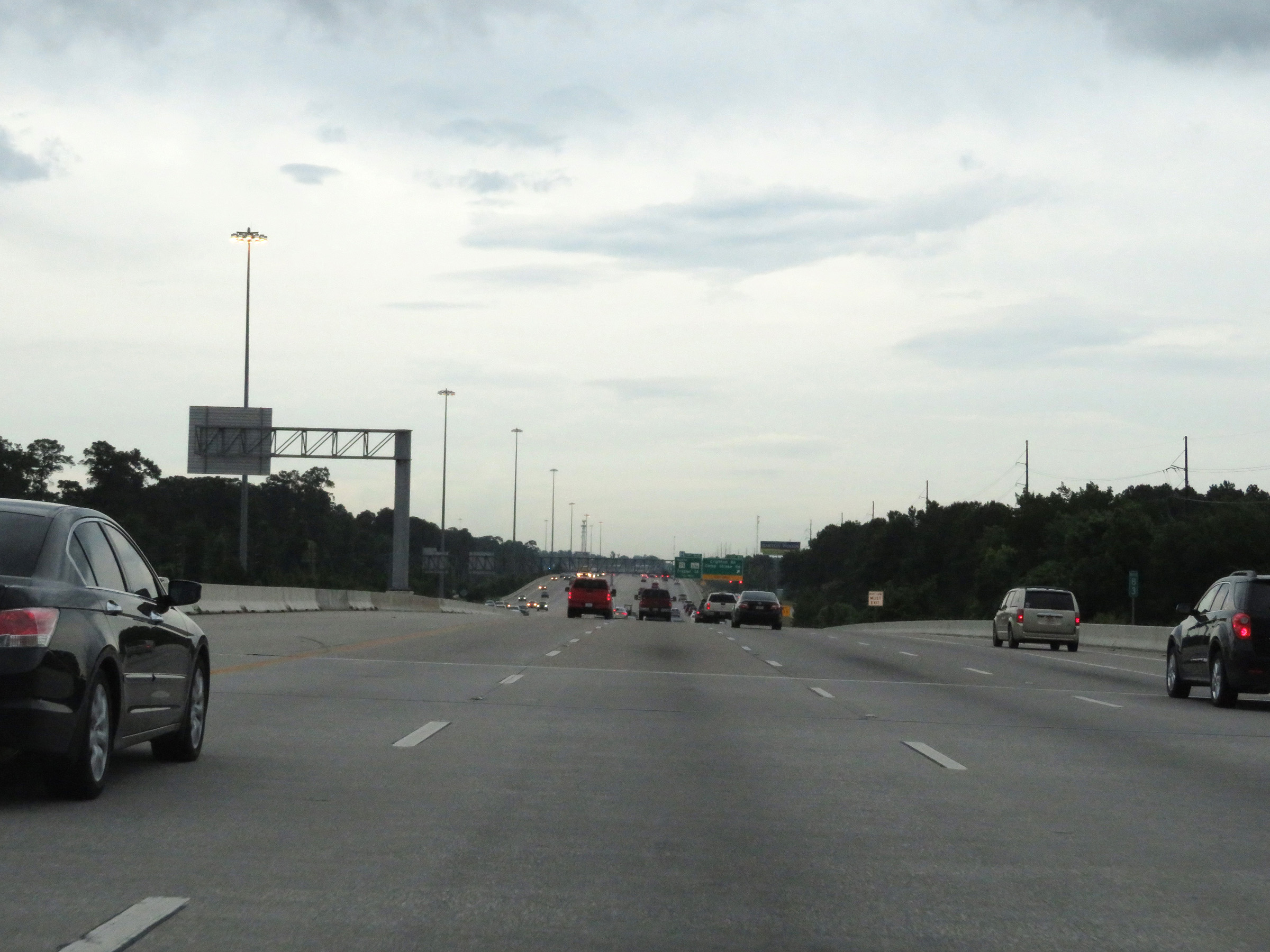 View on Interstate 45 North approaching Houston. We see the I-45 express lanes in the center of the highway here. (Photo taken 5/21/18). |