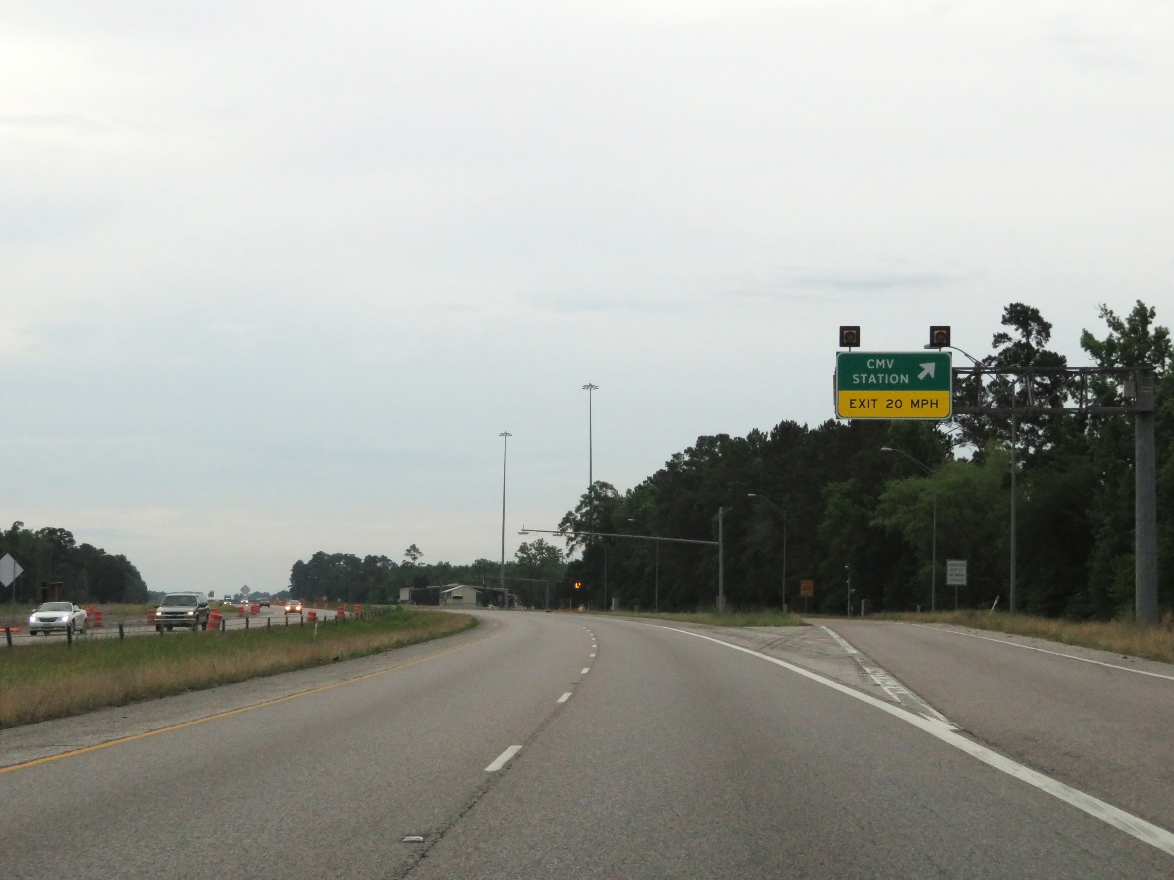 All thru trucks with hazardous materials in a class or amount requiring placards must follow either Interstate 45 or TX 146. (Photo taken 5/21/18). |