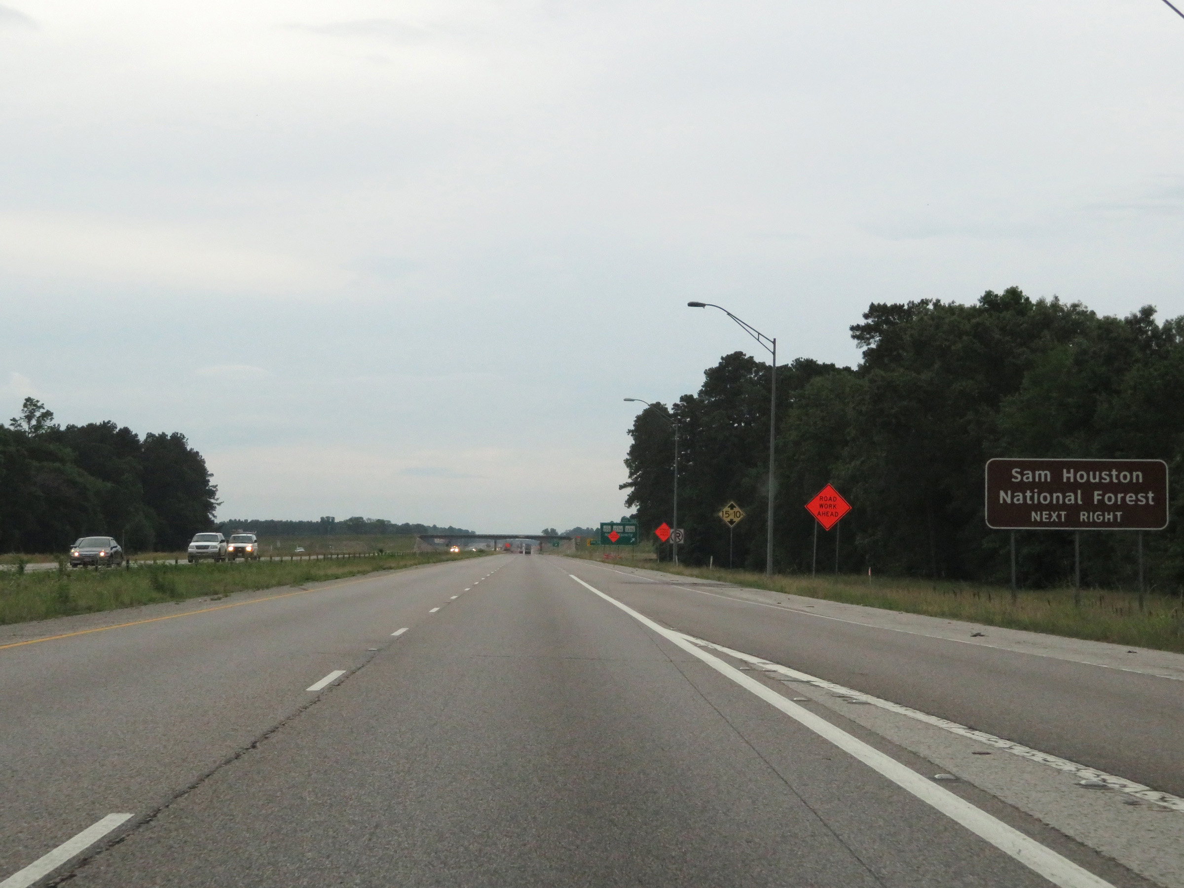 Approaching Exit 34, the speed limit on Interstate 45 North decreases to 60 mph. (Photo taken 5/21/18). |