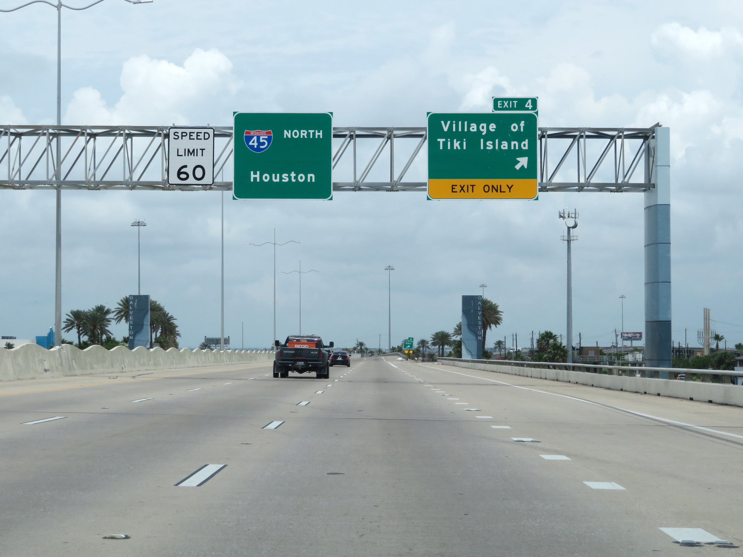 Interstate 45 North at Exit 4: Village of Tiki Island (Photo taken 5/21/18). |