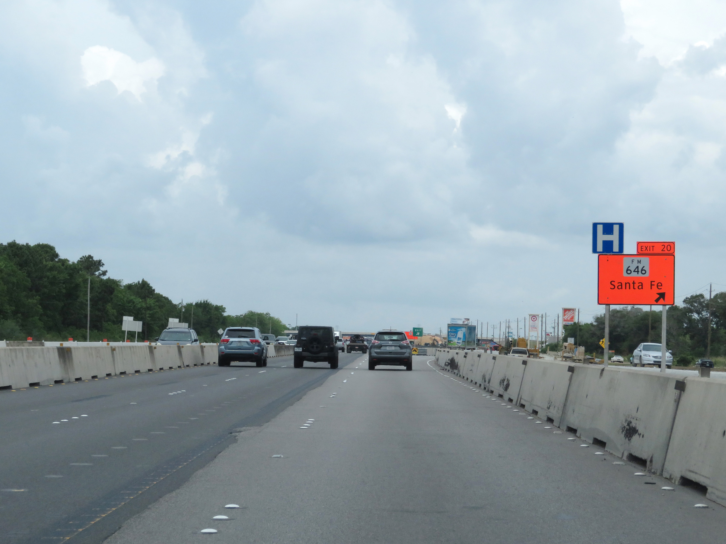 Interstate 45 North at Exit 20: FM 646 - Santa Fe (Photo taken 5/21/18). |