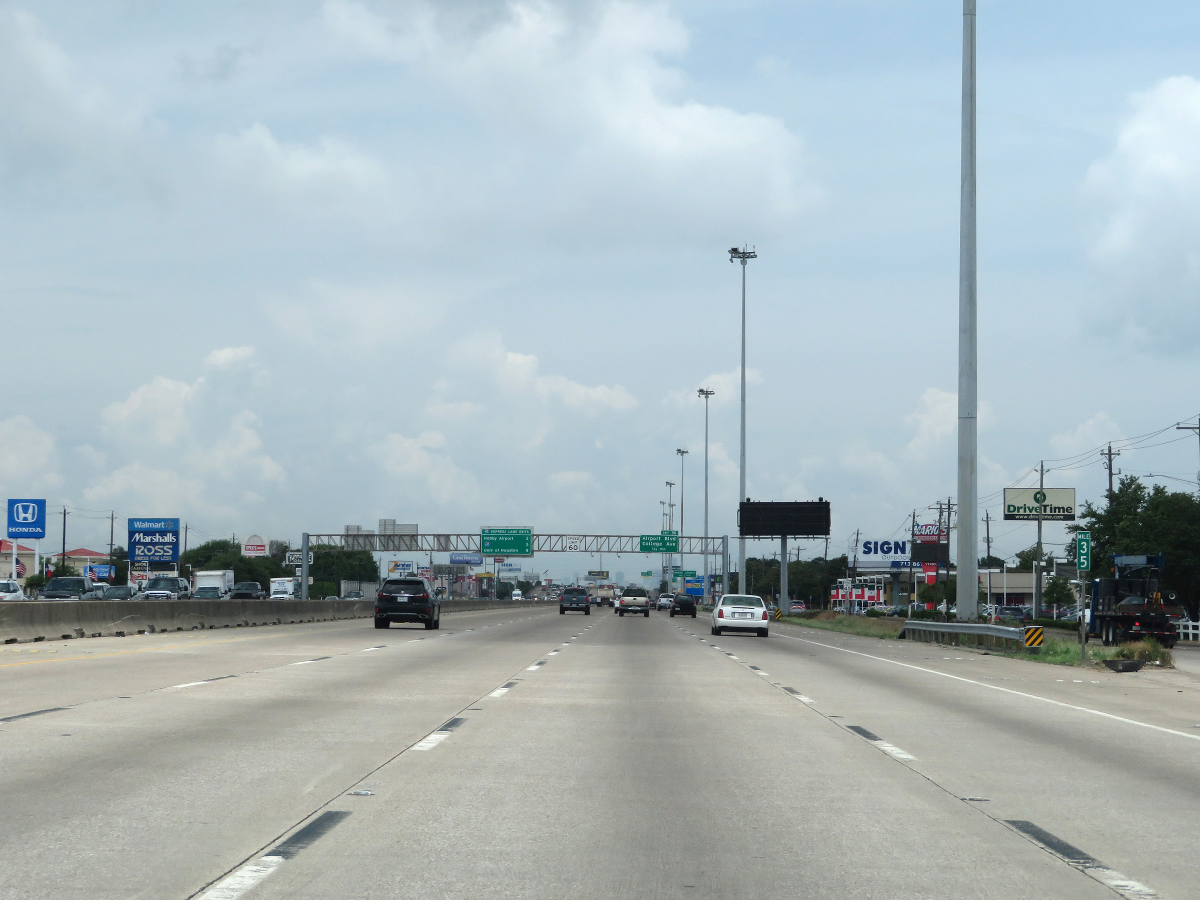 Interstate 45 North at Exit 36: Airport Blvd / College Ave (Photo taken 5/21/18). |