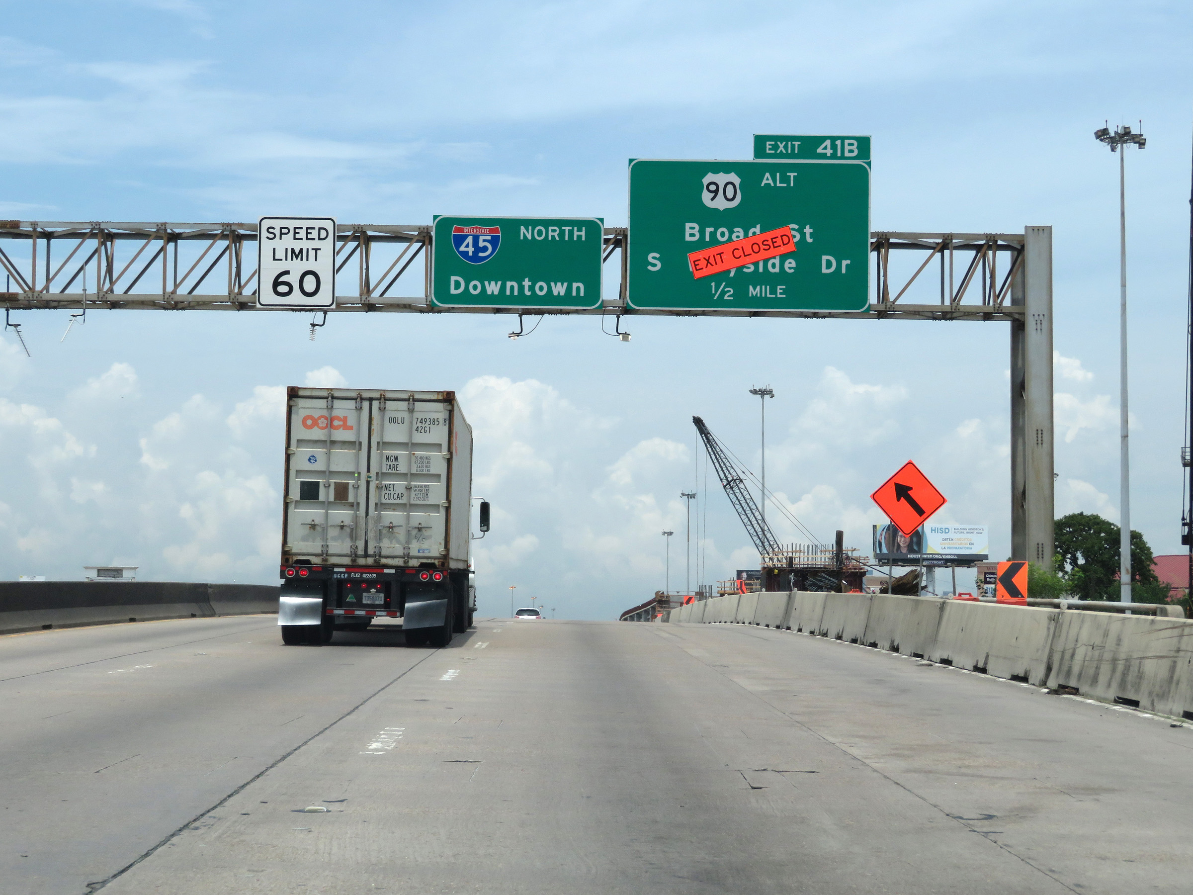 View on Interstate 45 North at mile marker 1. (Photo taken 5/21/18). |