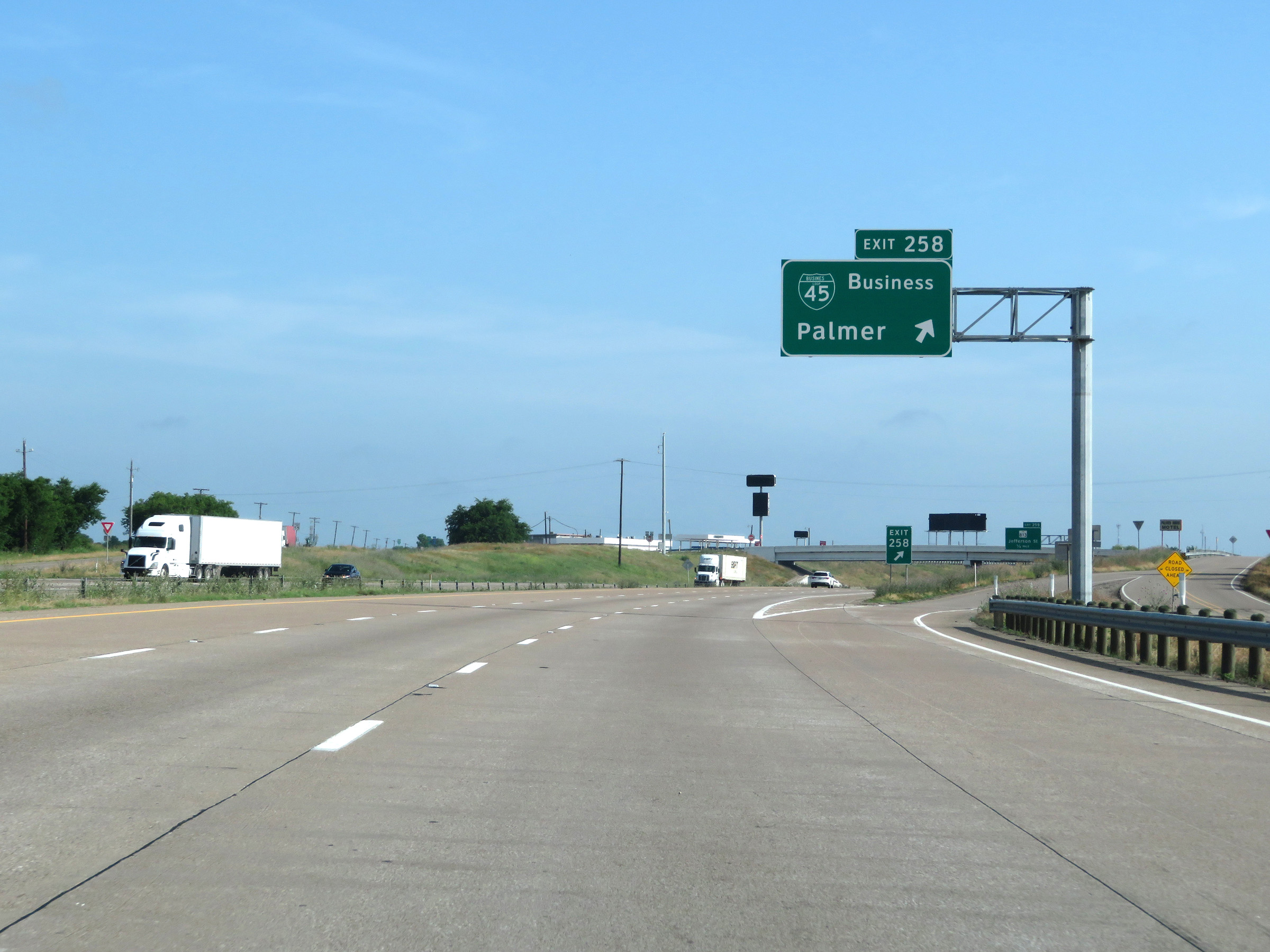 Interstate 45 North approaching Exit 22 - 1 mile. (Photo taken 5/21/18). |