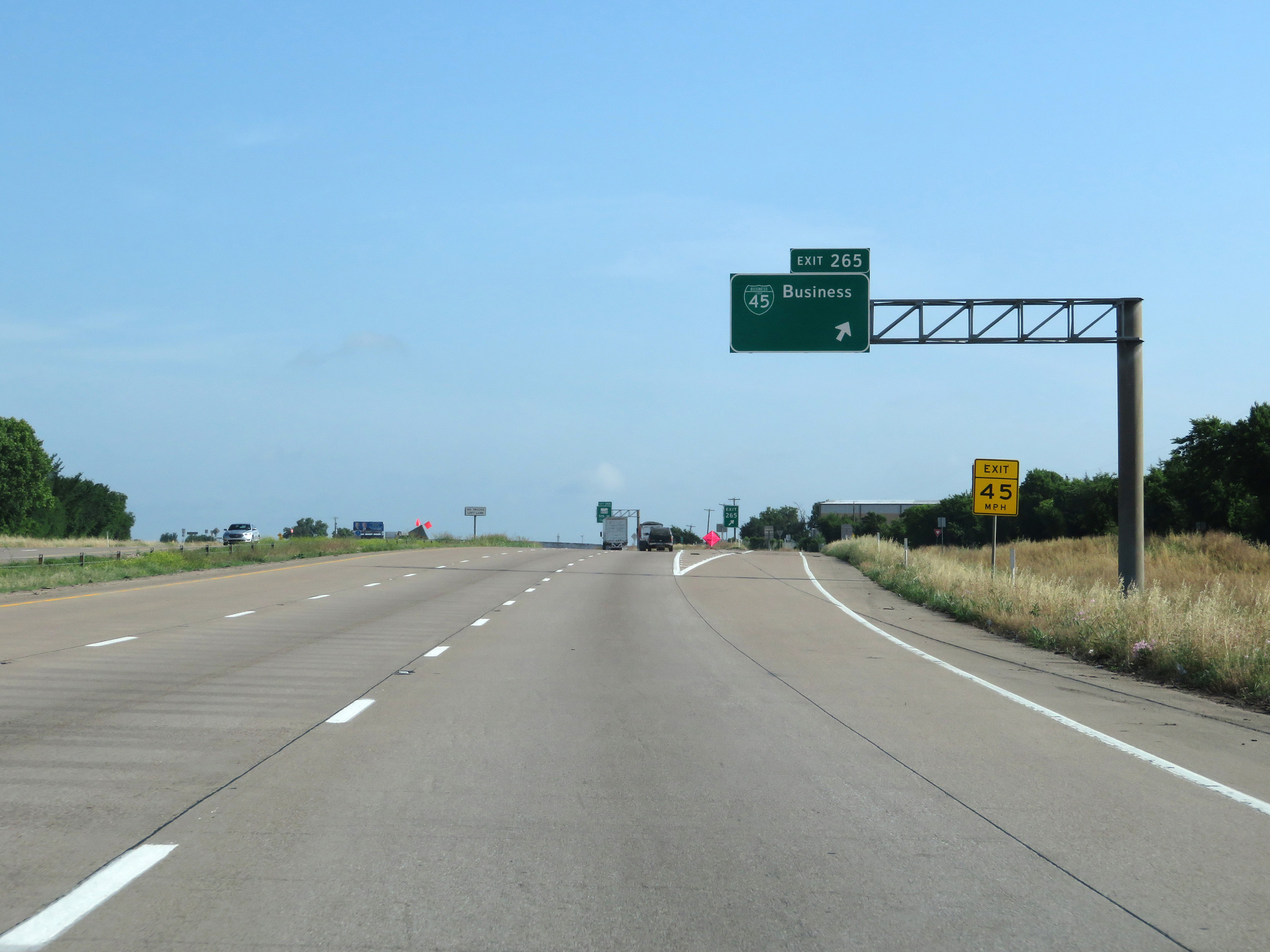 North of Exit 5, the speed limit increases to 65 mph on Interstate 45 North. (Photo taken 5/21/18). |
