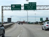 A view of the ramp for Exit 4 on Interstate 45 North, at the north end of the Galveston Causeway Bridge. (Photo taken 5/21/18). |