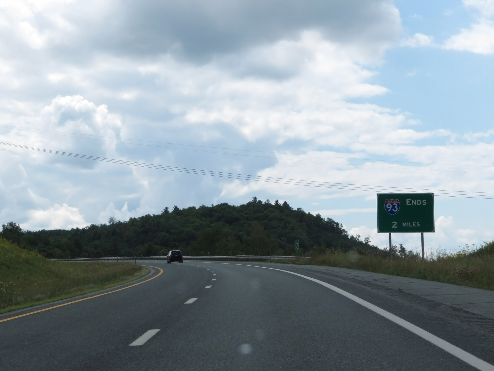 At mile marker 9, this sign warns that Interstate 93 ends 2 miles ahead. (Photo taken 8/8/17). |