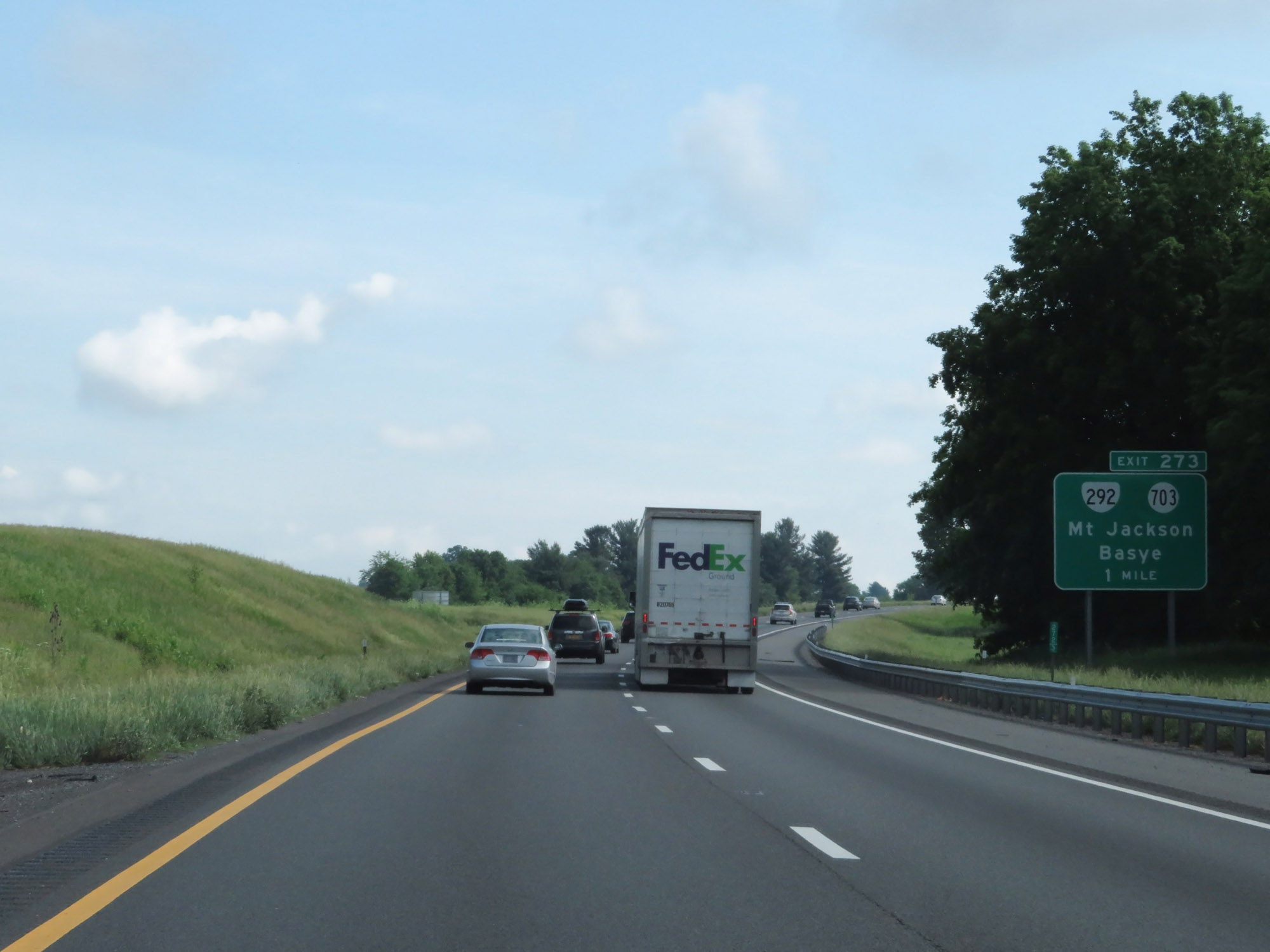 Interstate 81 North at Exit 273: VA 292 / SR 703 - Mt Jackson / Basye (Photo taken 5/27/18). |