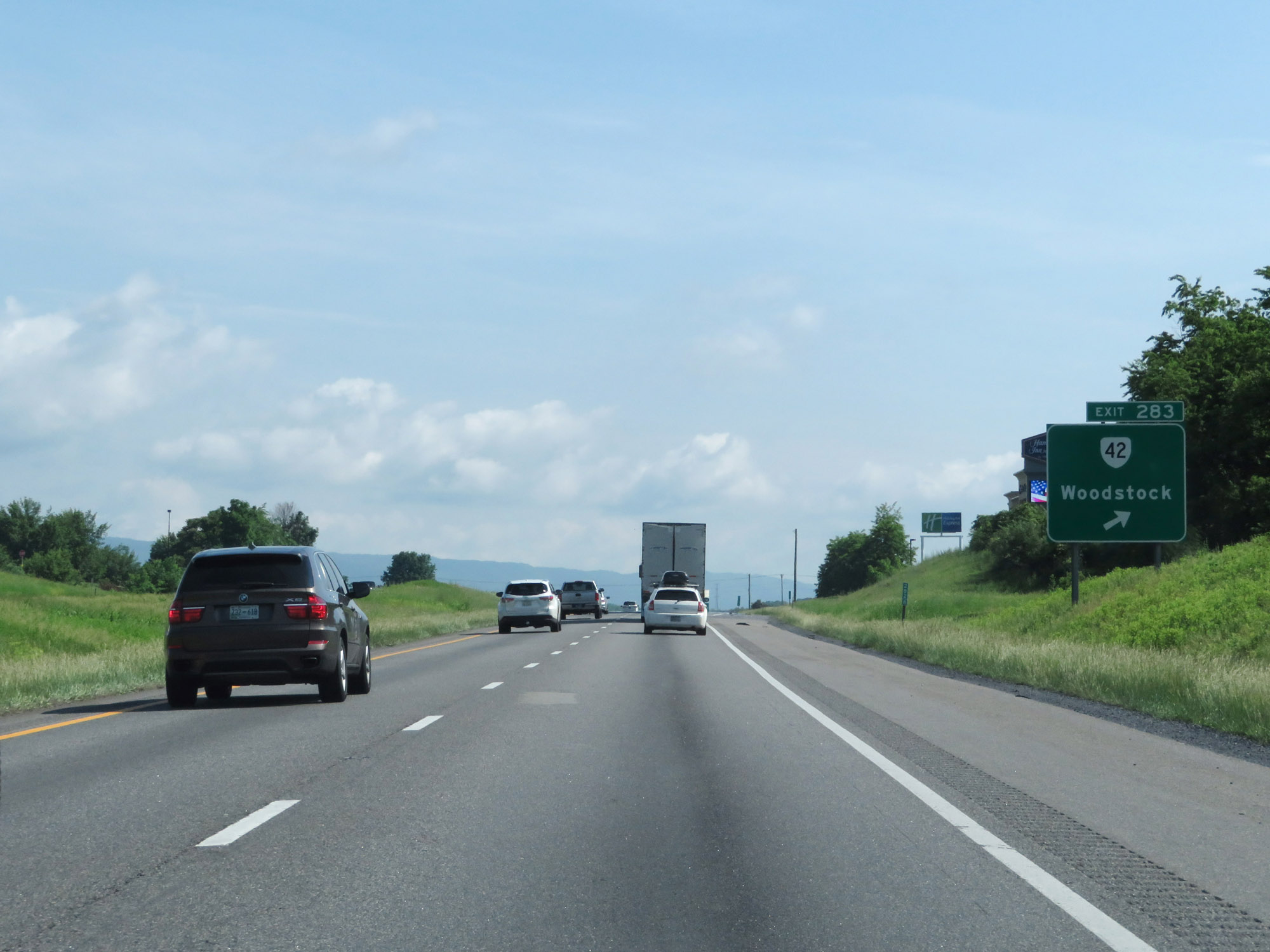 Interstate 81 North at Exit 283: VA 42 - Woodstock (Photo taken 5/27/18). |
