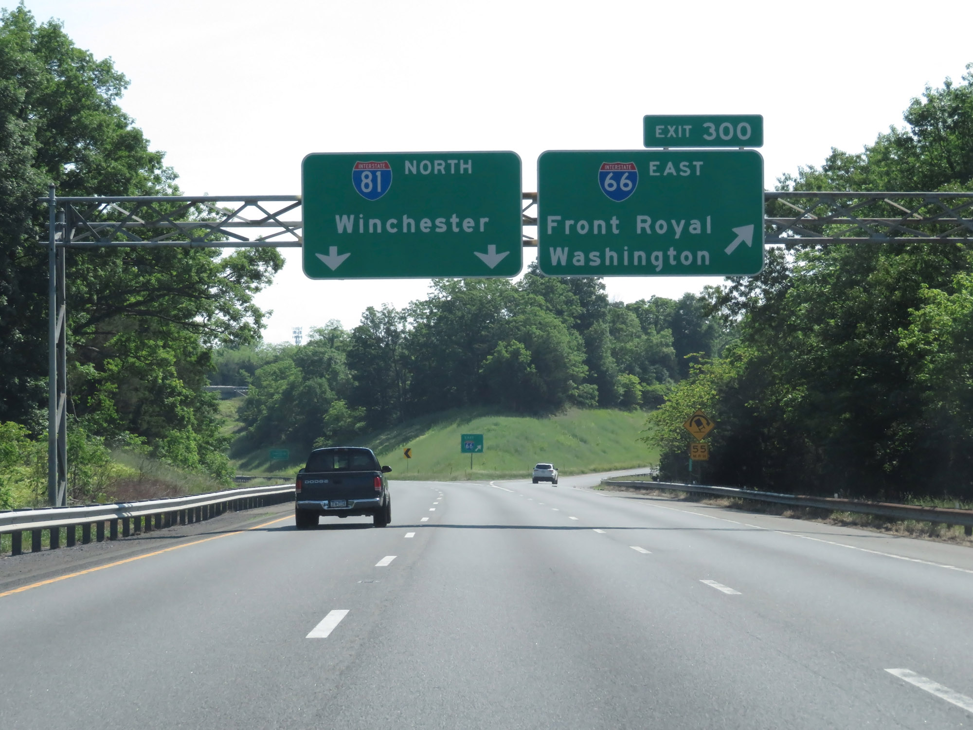 Interstate 81 North at Exit 300: Interstate 66 East - Front Royal / Washington (Photo taken 5/27/18). |