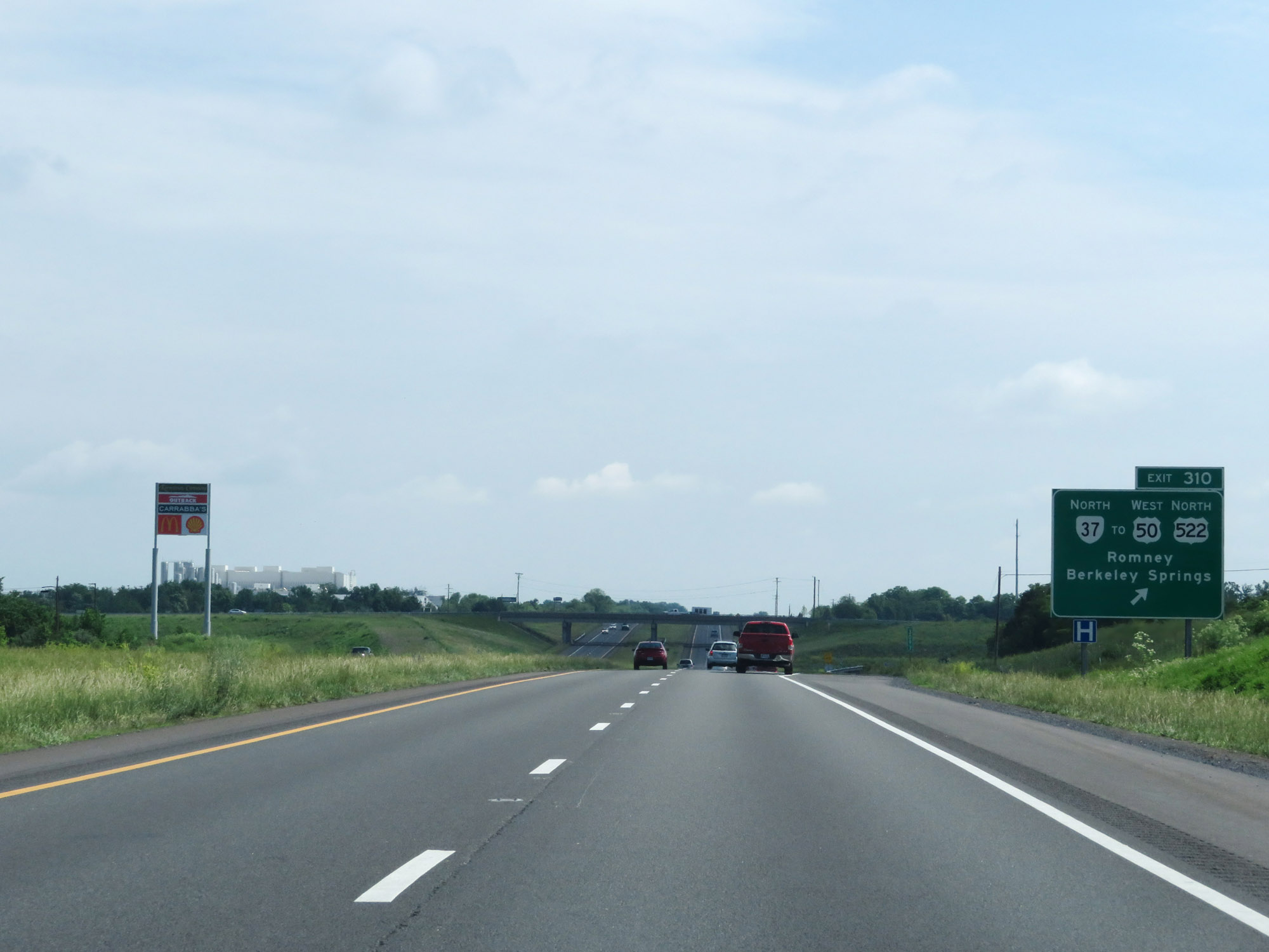 Interstate 81 North at Exit 310: VA 37 North / To US 50 West / To US 522 North - Romney / Berkeley Springs (Photo taken 5/27/18). |