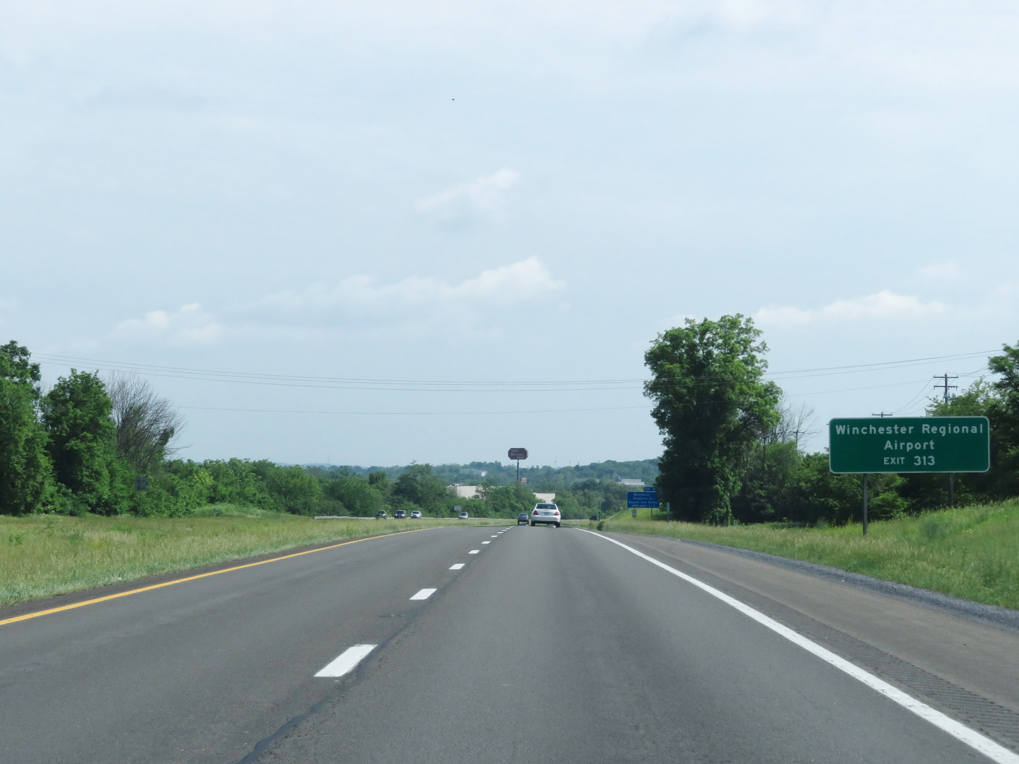 Take Exit 313 to Winchester Regional Airport. (Photo taken 5/27/18). |