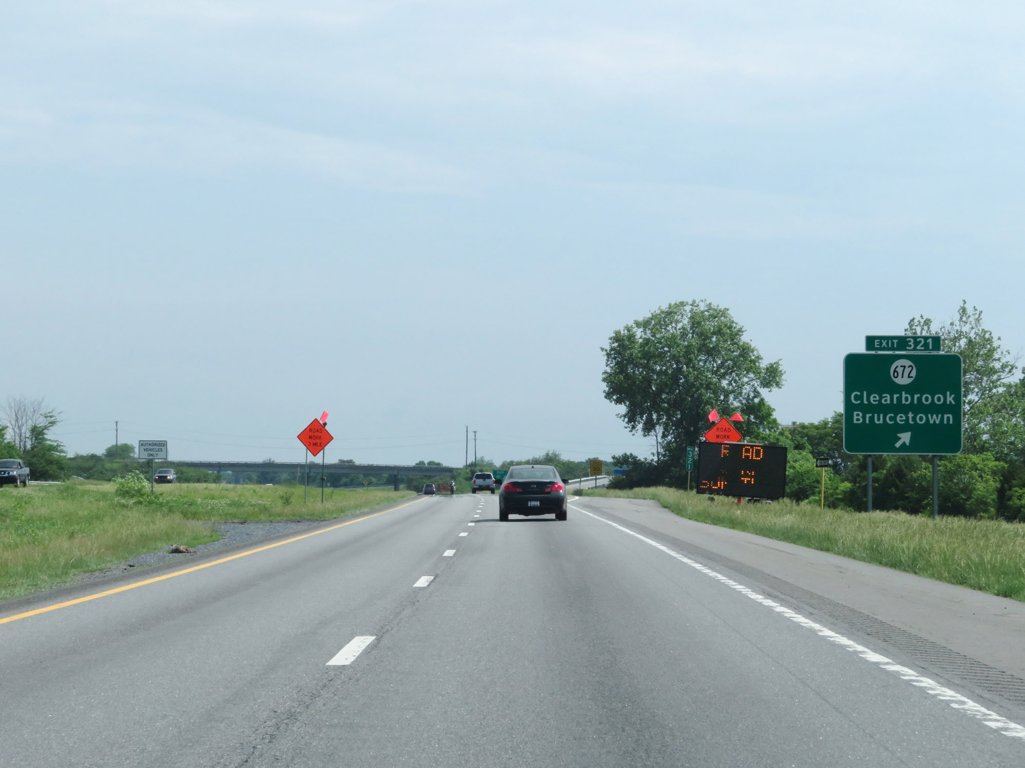 Interstate 81 North at Exit 321: SR 672 - Clearbrook / Brucetown (Photo taken 5/27/18). |