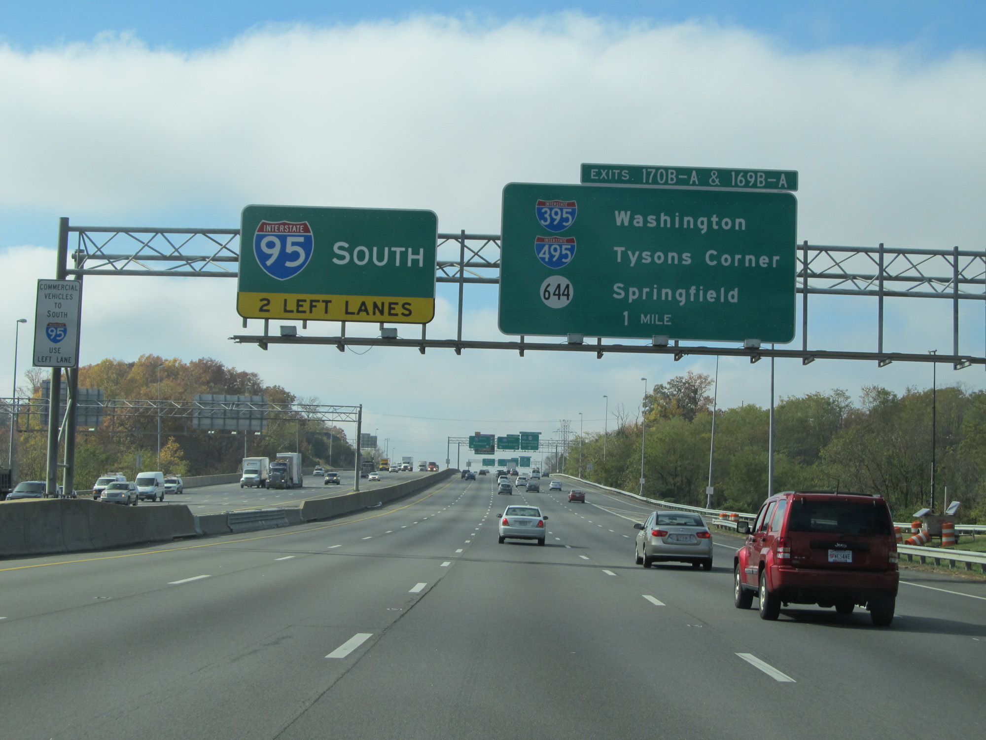 Interstate 95 South at Exit 46: Interstate 295 North - Washington (Photo taken 5/20/17). |