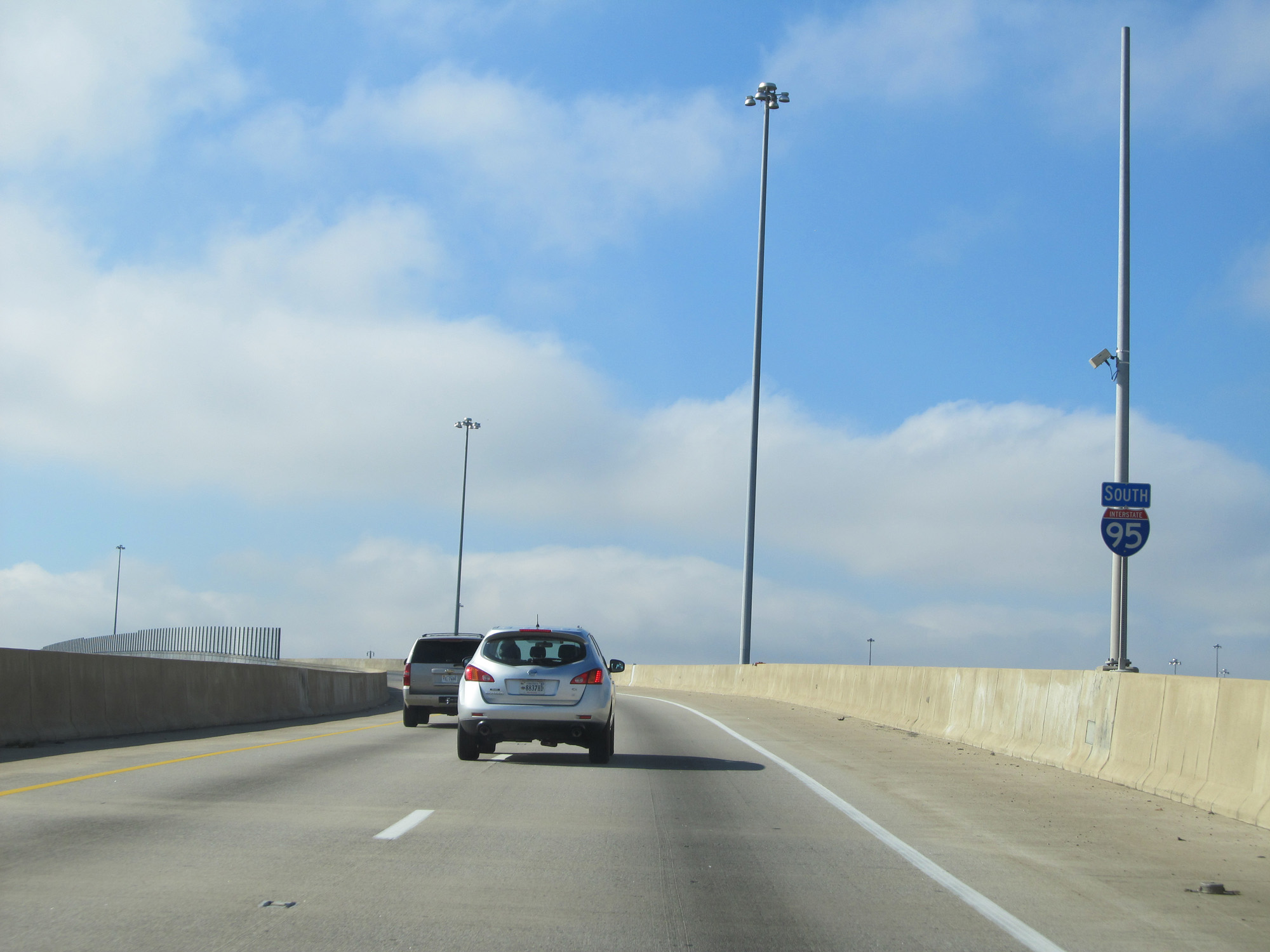 Interstate 95 South as traffic from Interstate 295 South prepares to merge from the left. (Photo taken 5/20/17). |