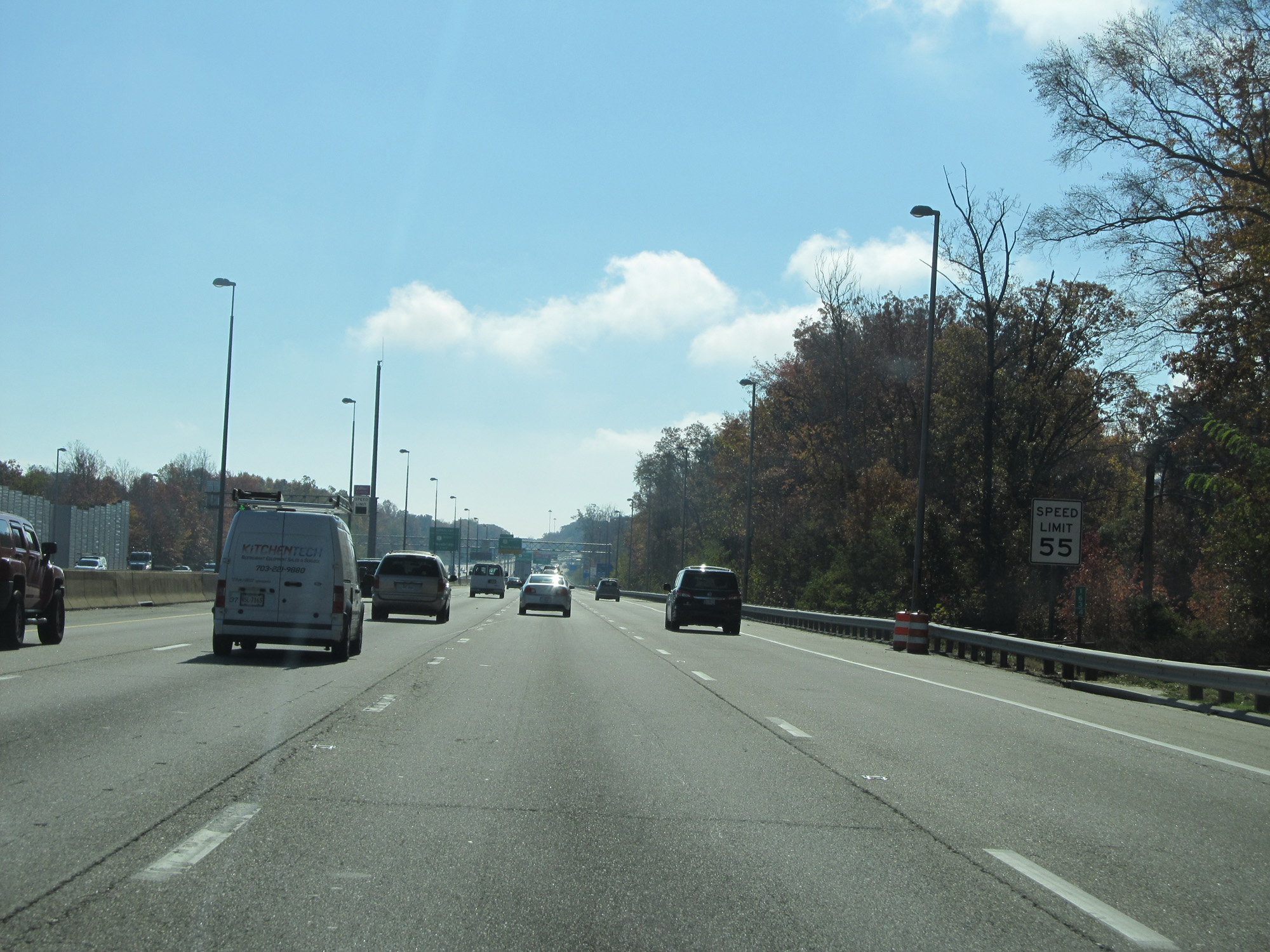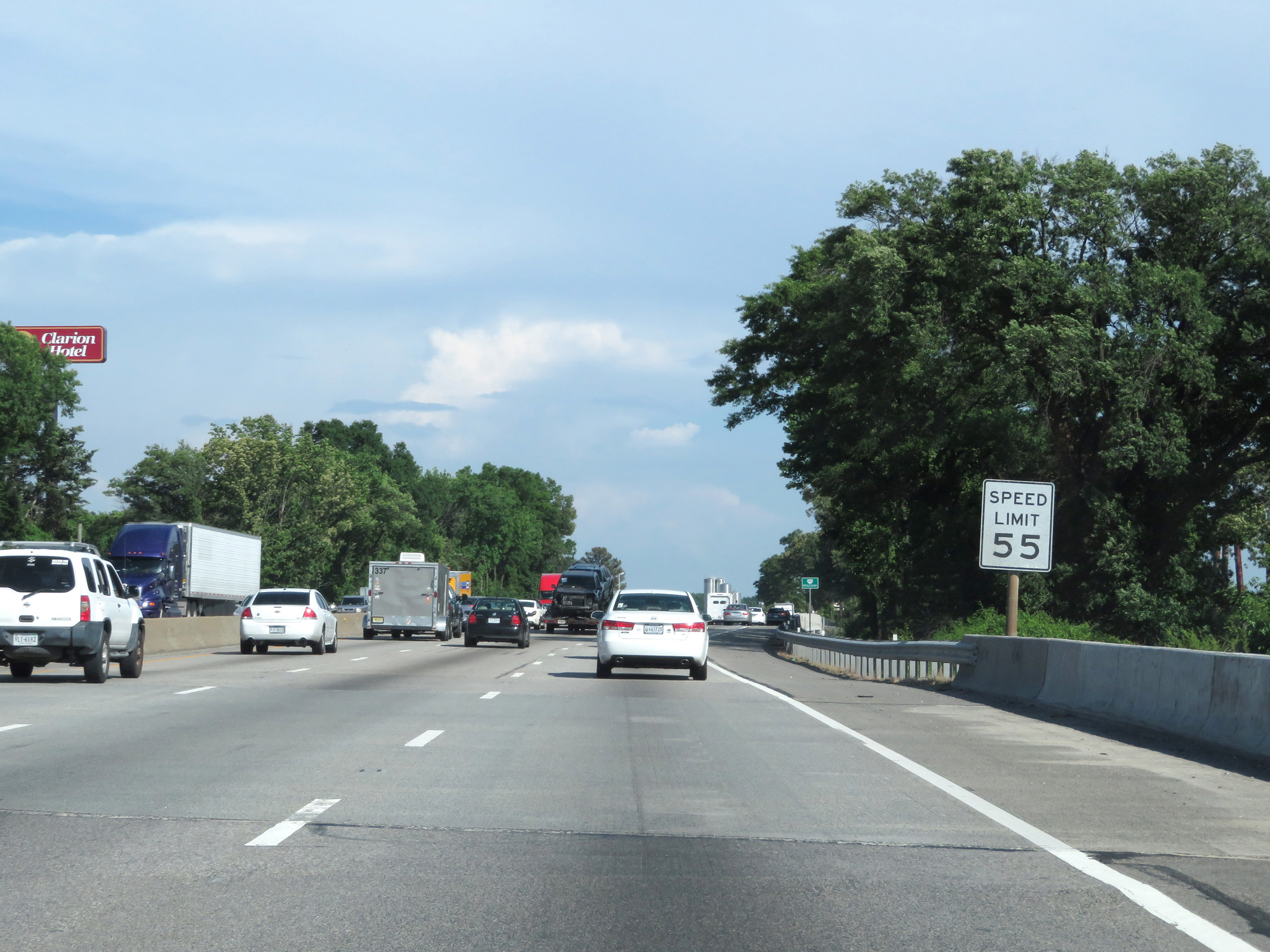 Approaching Exit 54, the speed limit decreases to 55 mph once again. (Photo taken 5/19/17). |
