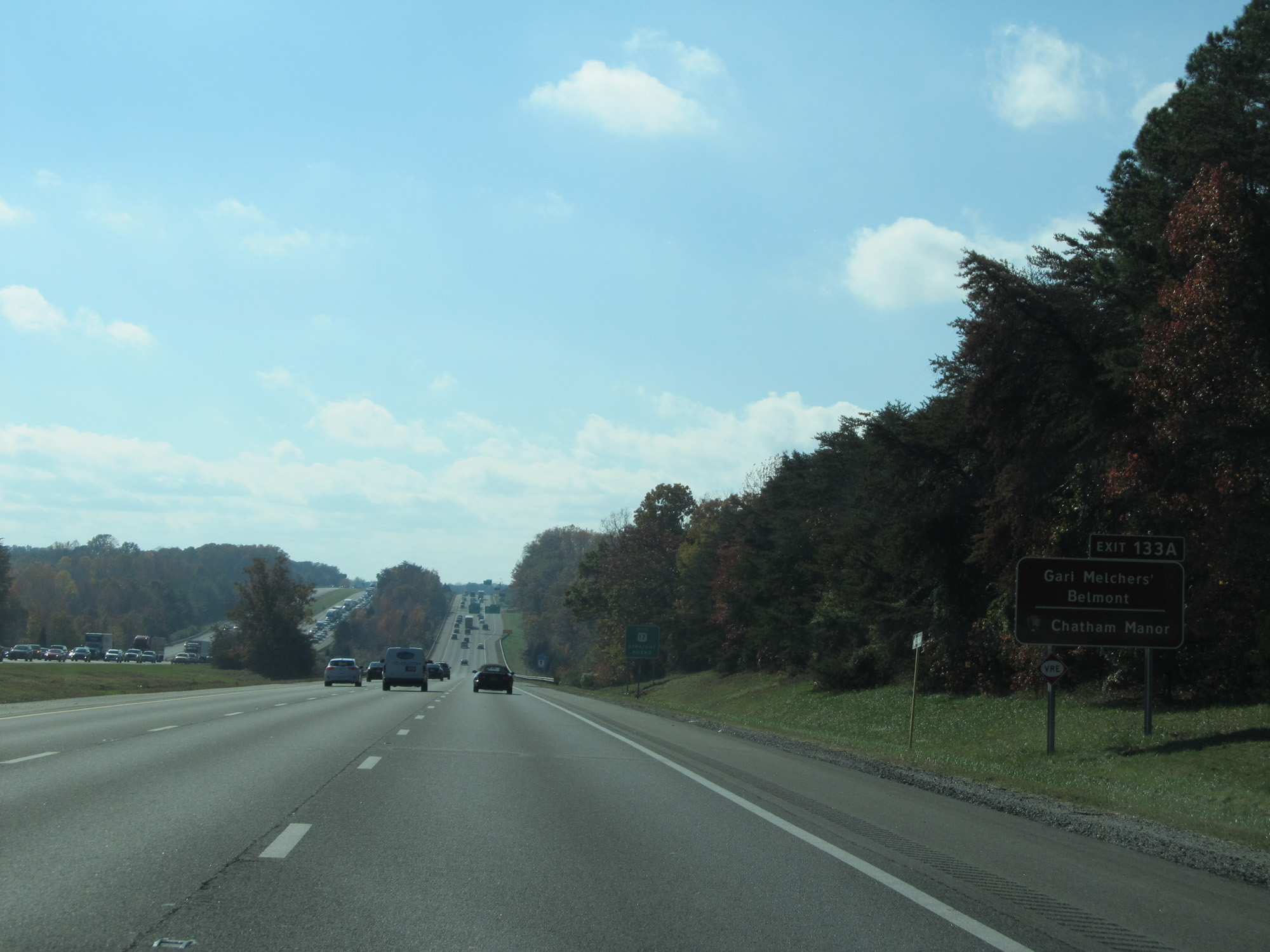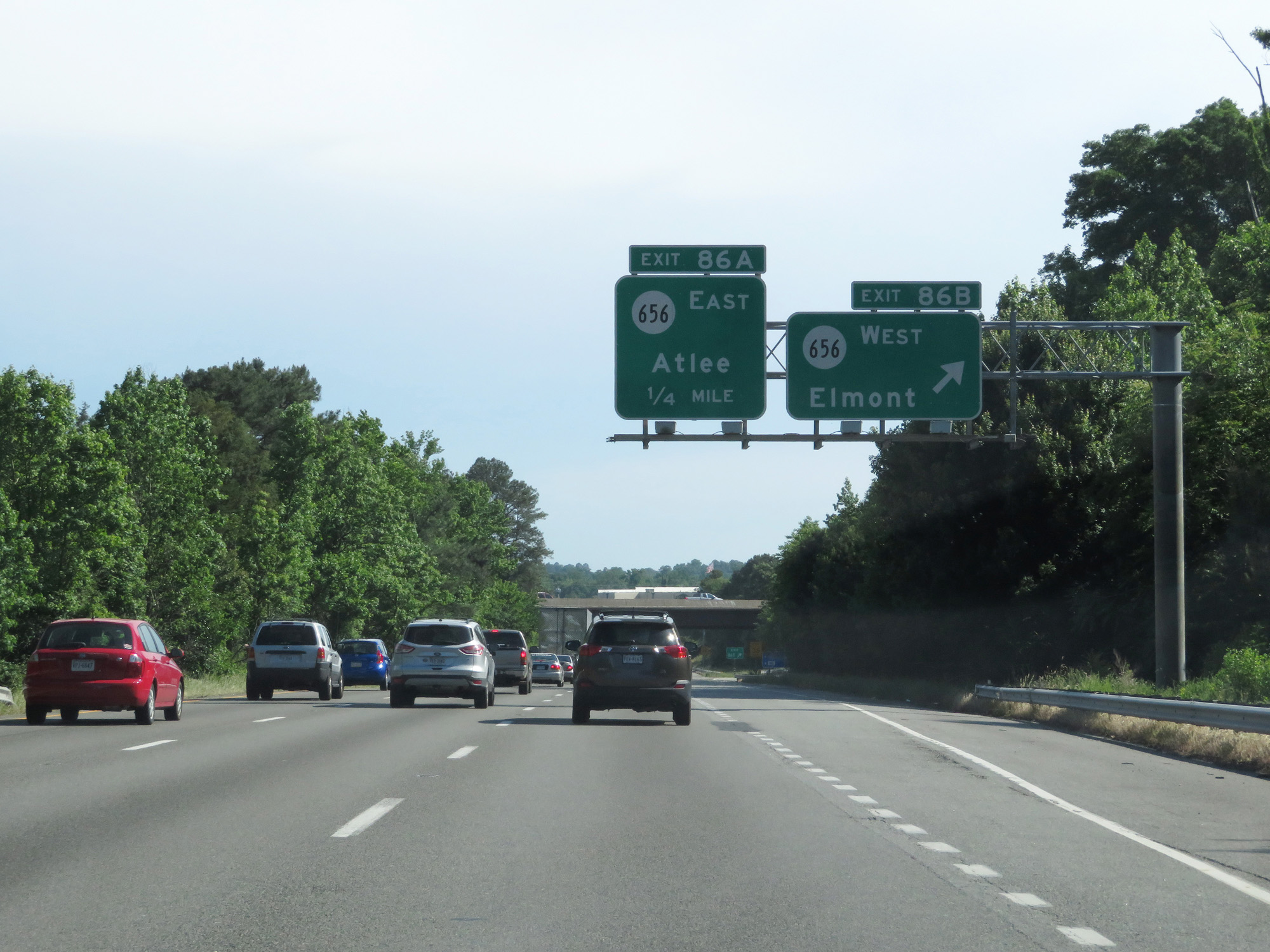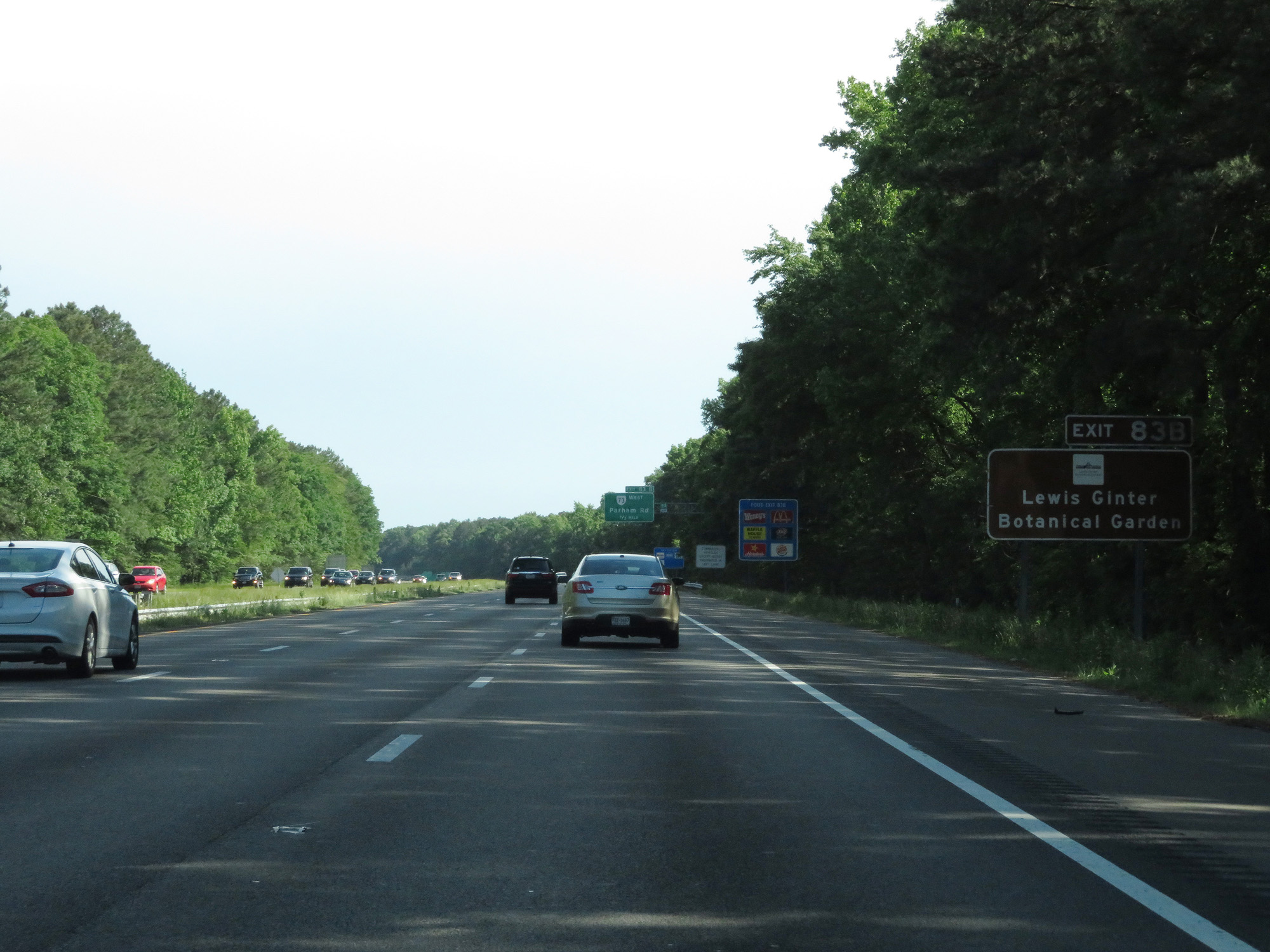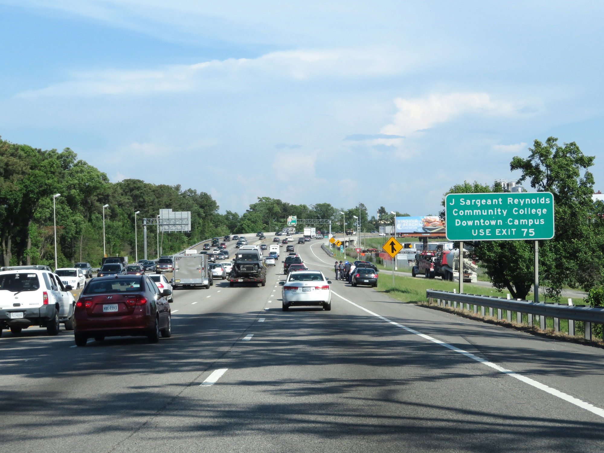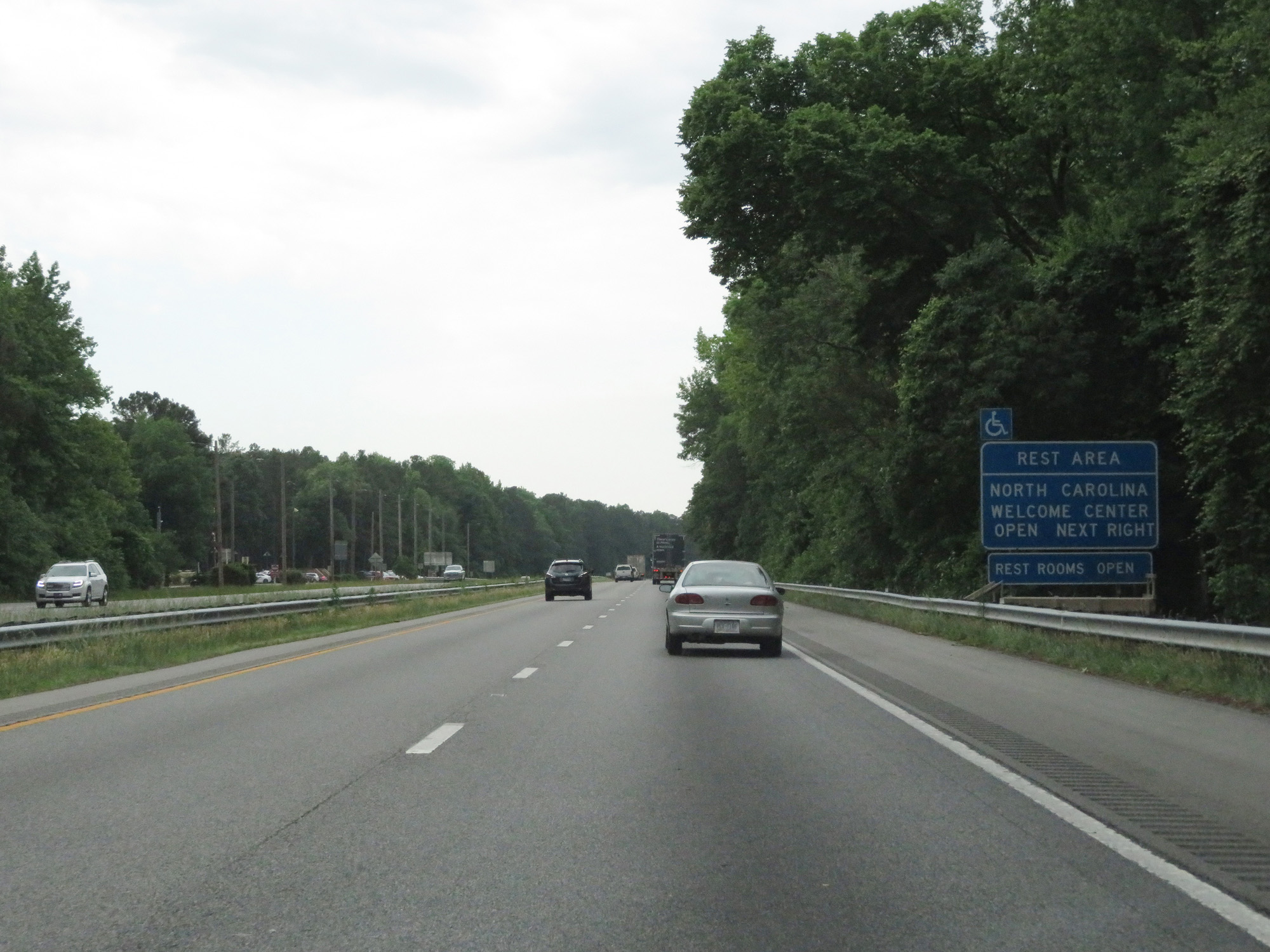 Interstate 95 South at Exit 51: Interstate 85 South / US 460 West - Durham (Photo taken 5/19/17). |