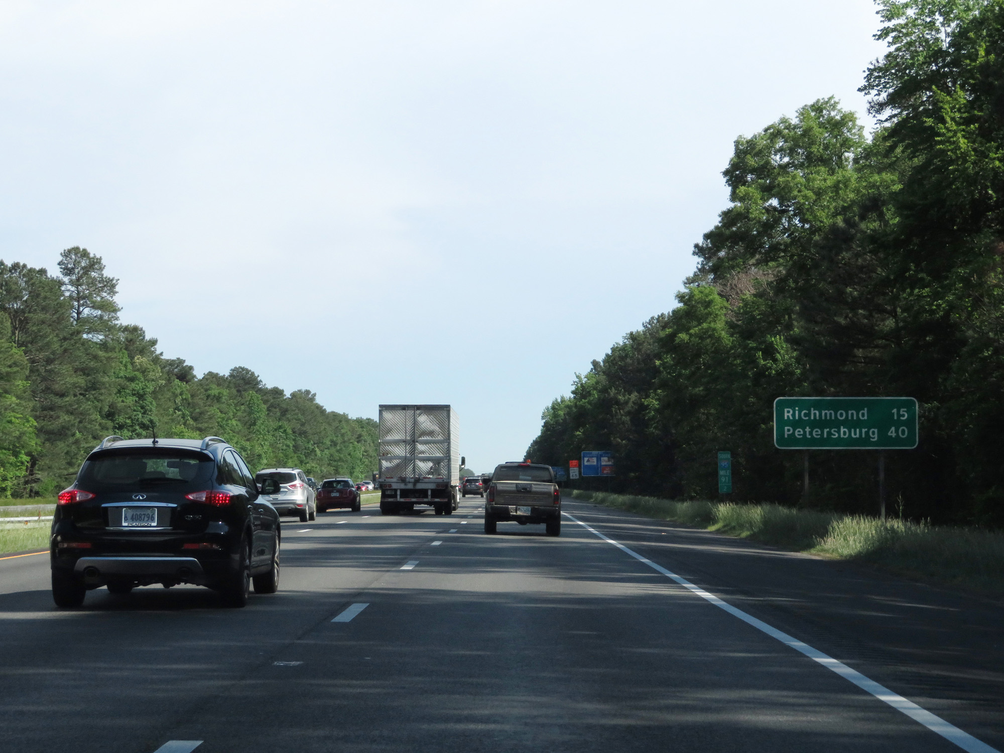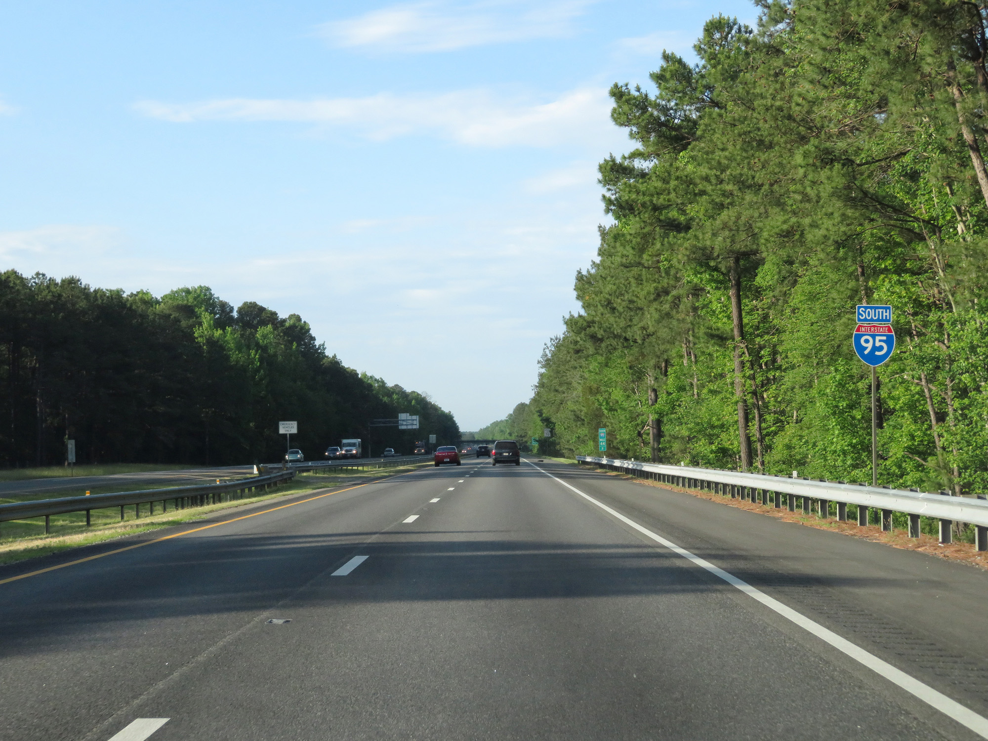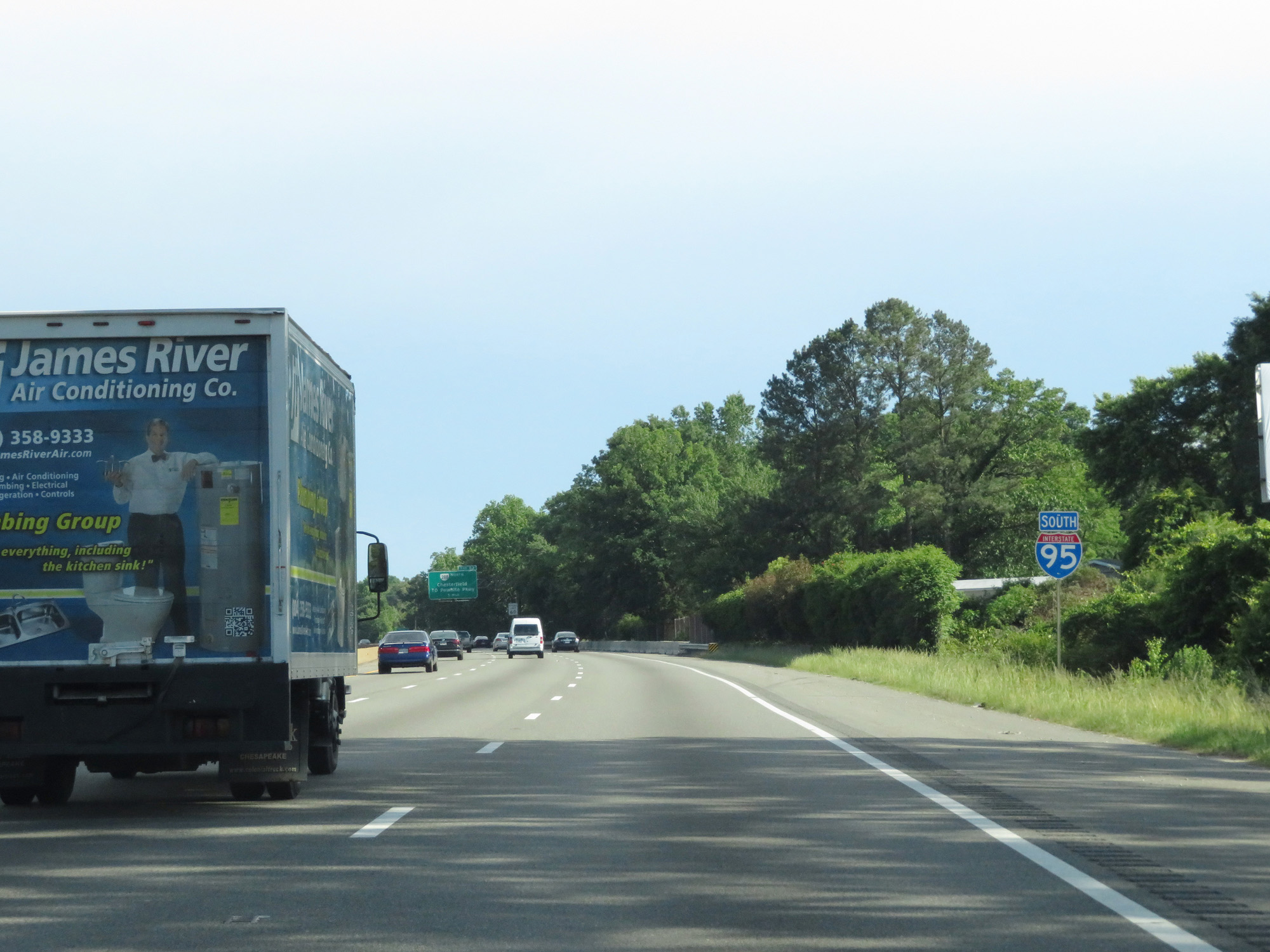 Interstate 95 South entering Prince George County. (Photo taken 5/20/17). |
