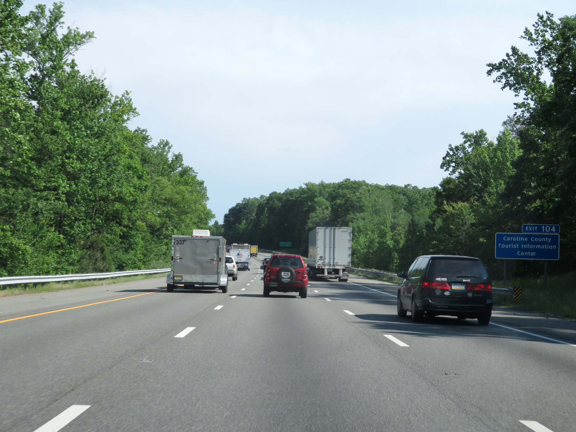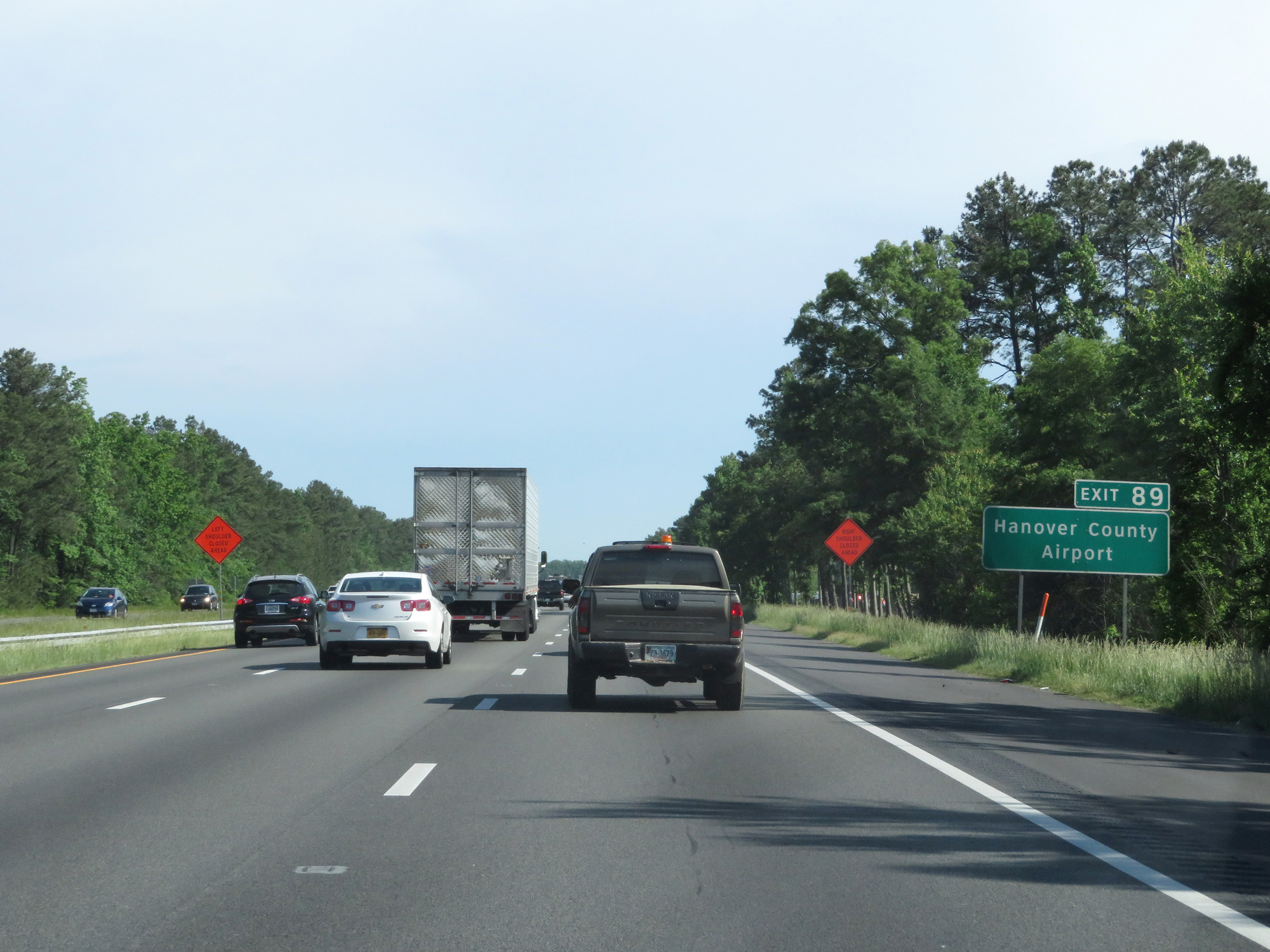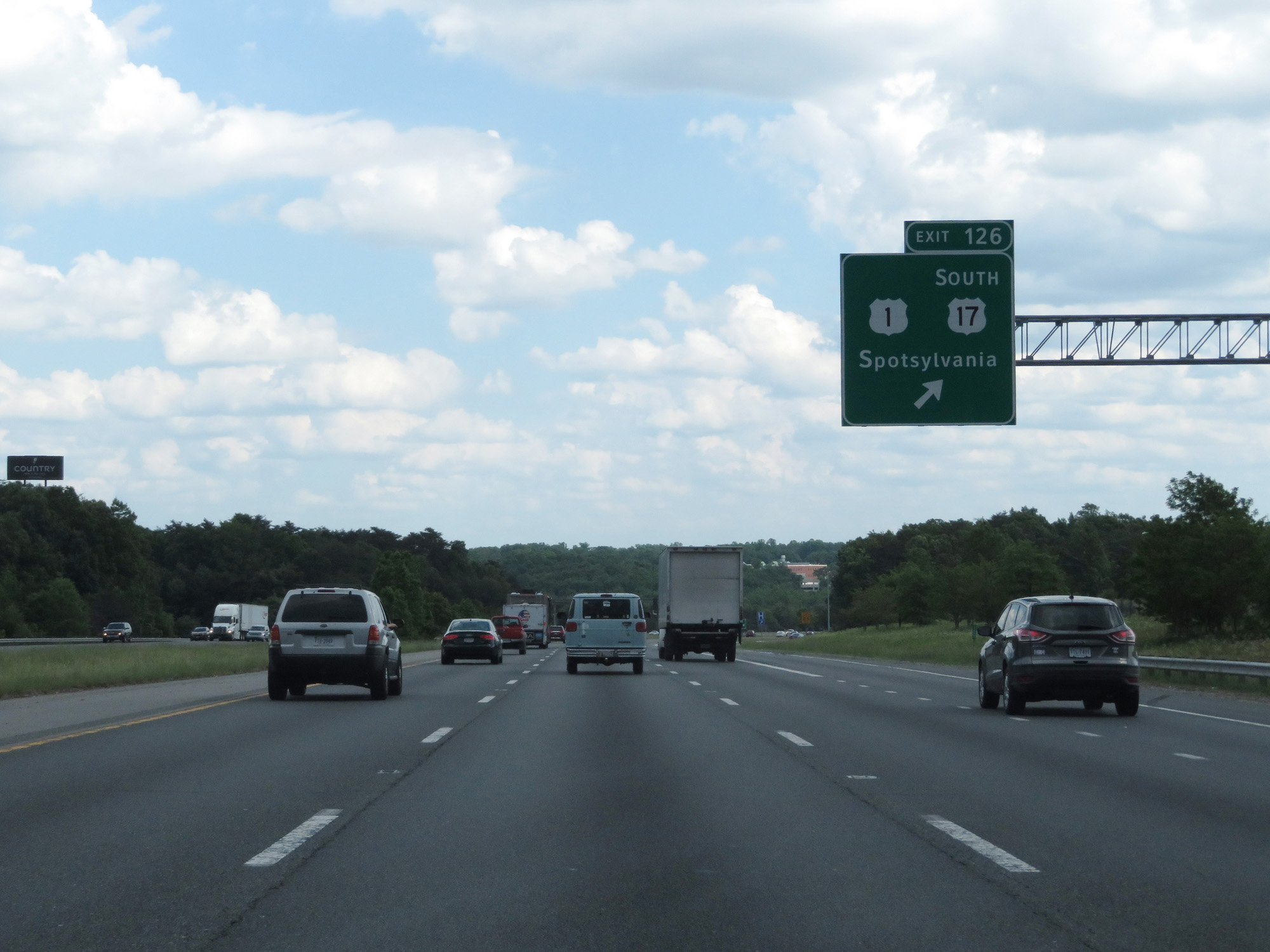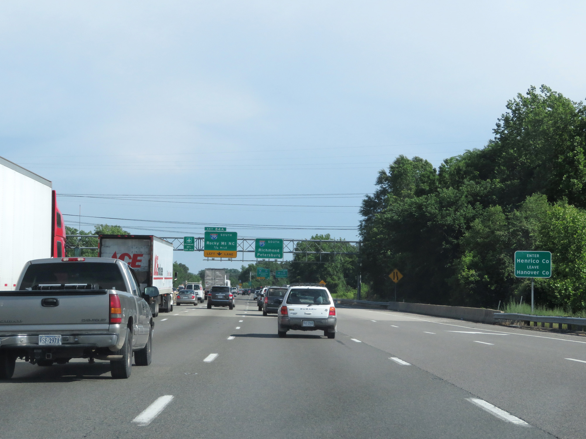Interstate 95 South entering Prince George County. (Photo taken 5/20/17). |