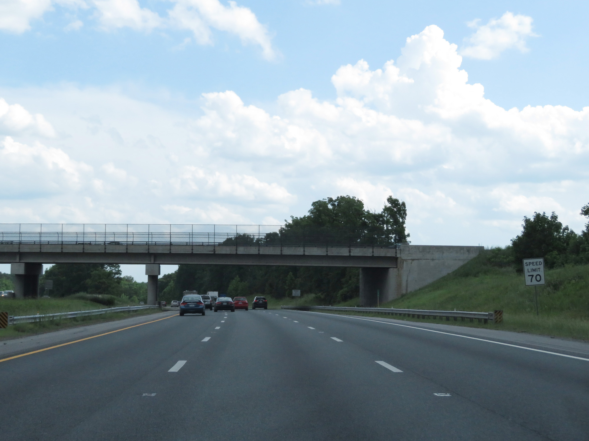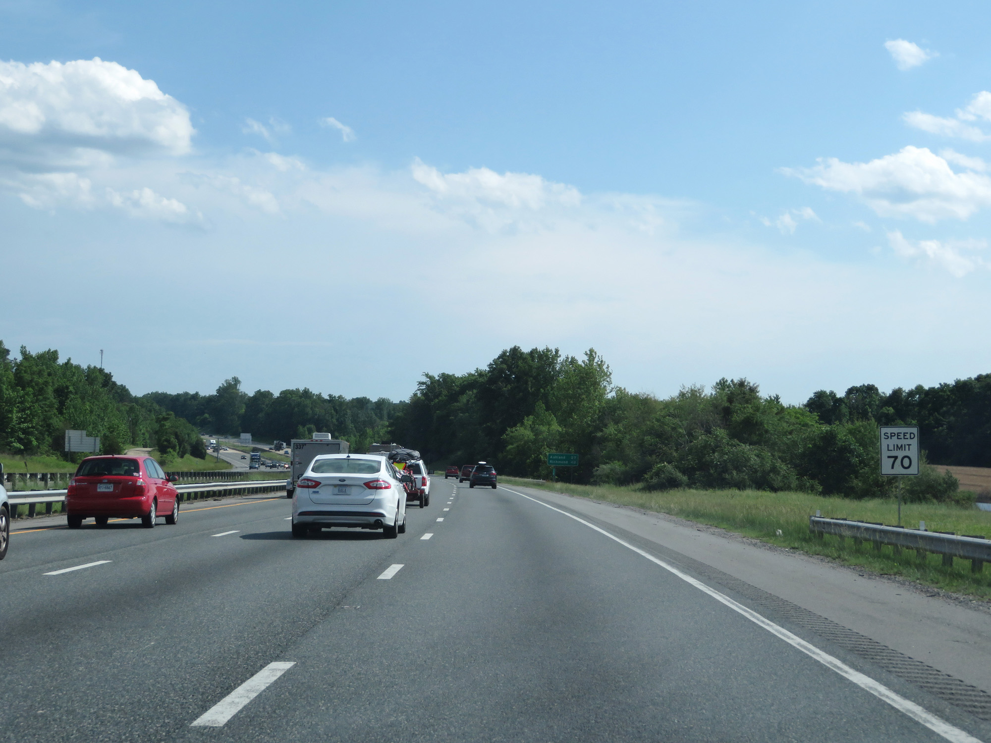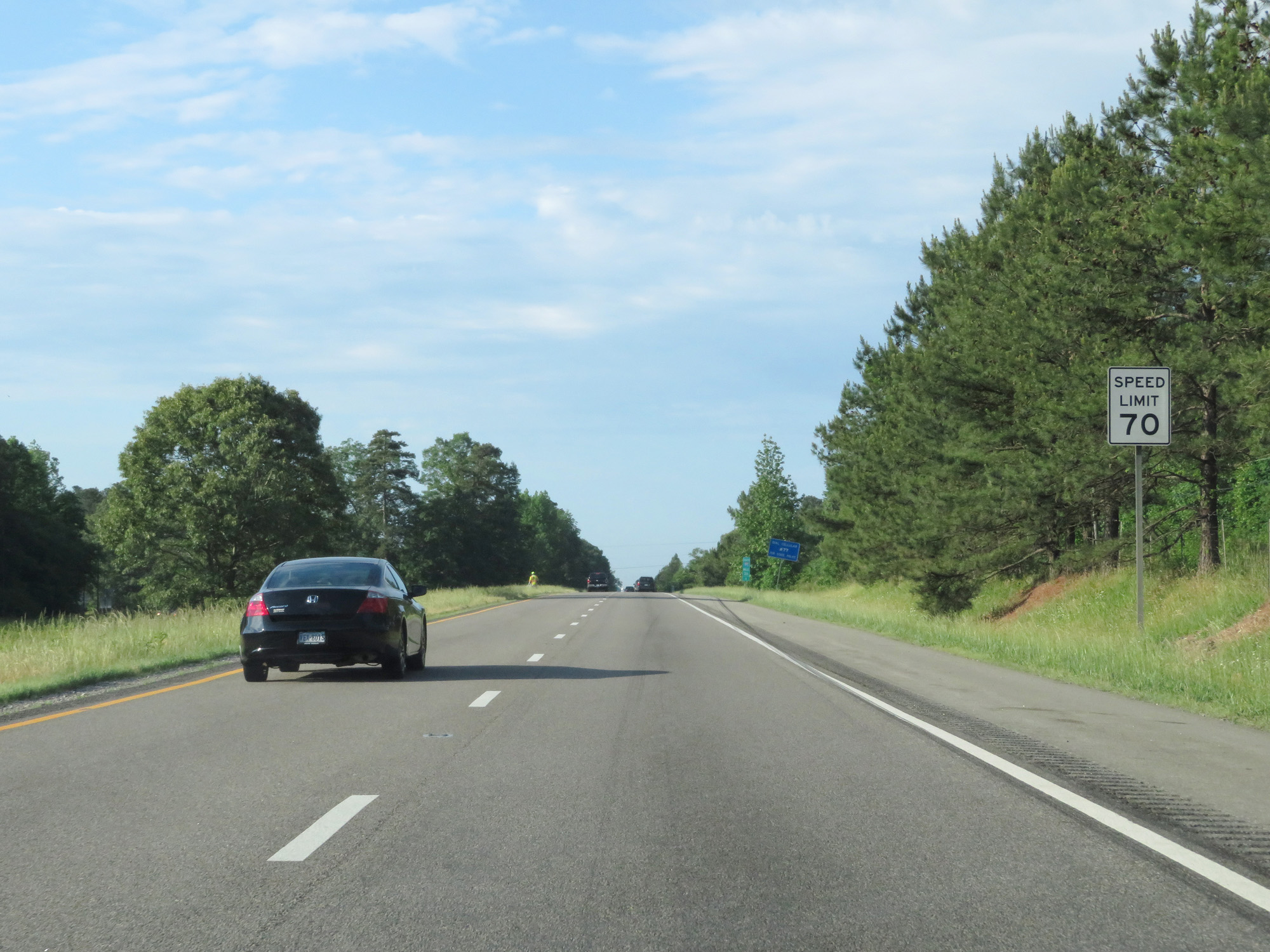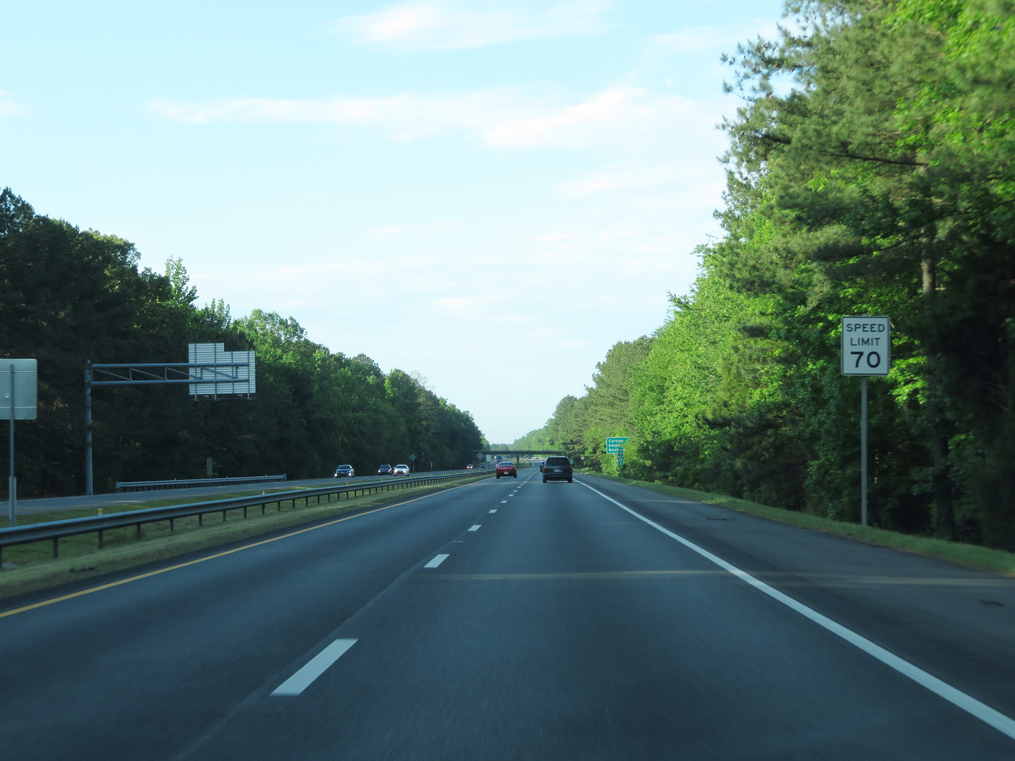 South of Exit 45, the standard rural speed limit of 70 mph resumes. (Photo taken 5/20/17). |