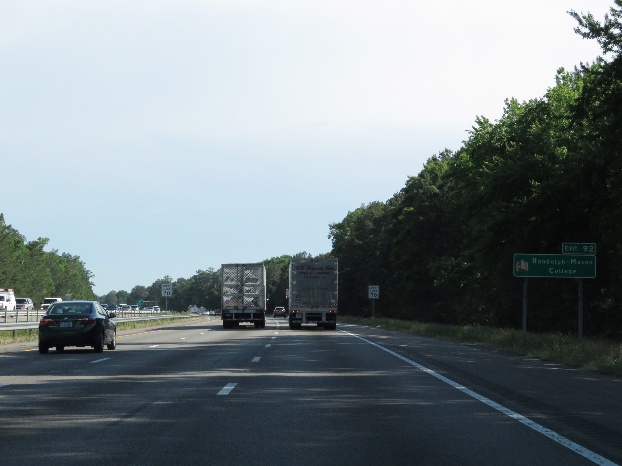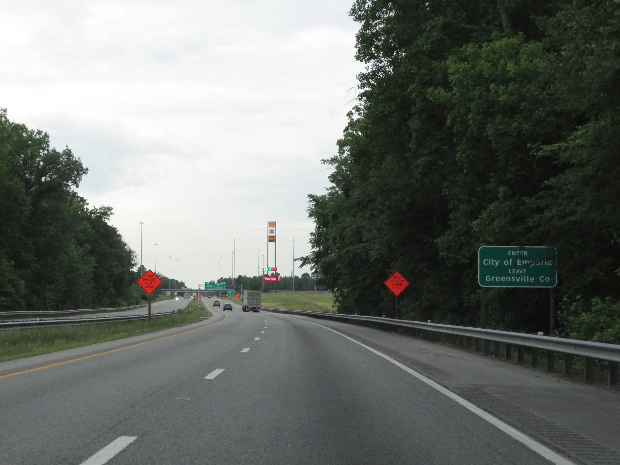 Interstate 95 South entering the City of Emporia. (Photo taken 5/20/17). |