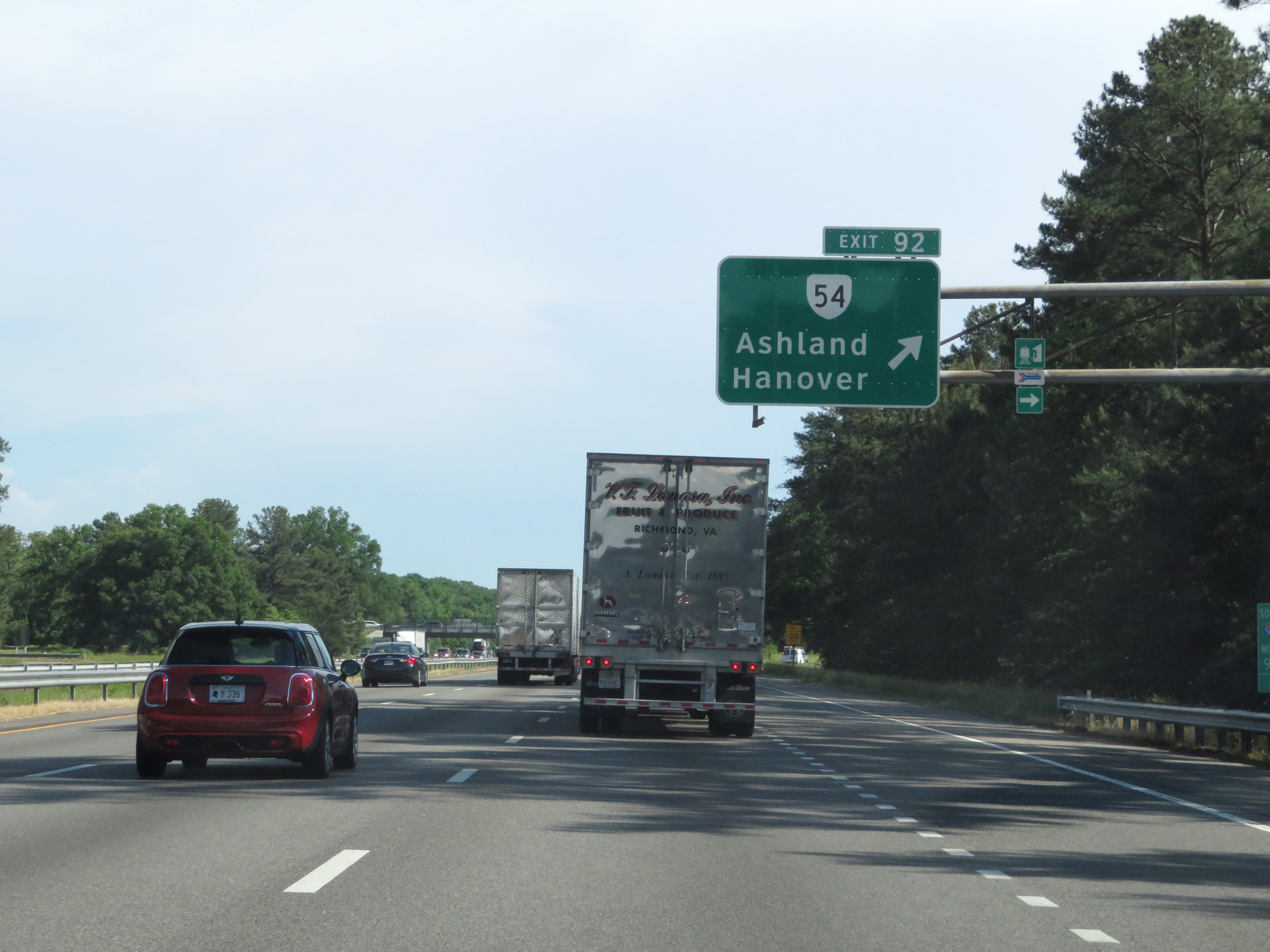 Interstate 95 South at Exit 54: VA 144 - Temple Ave (Photo taken 5/19/17). |