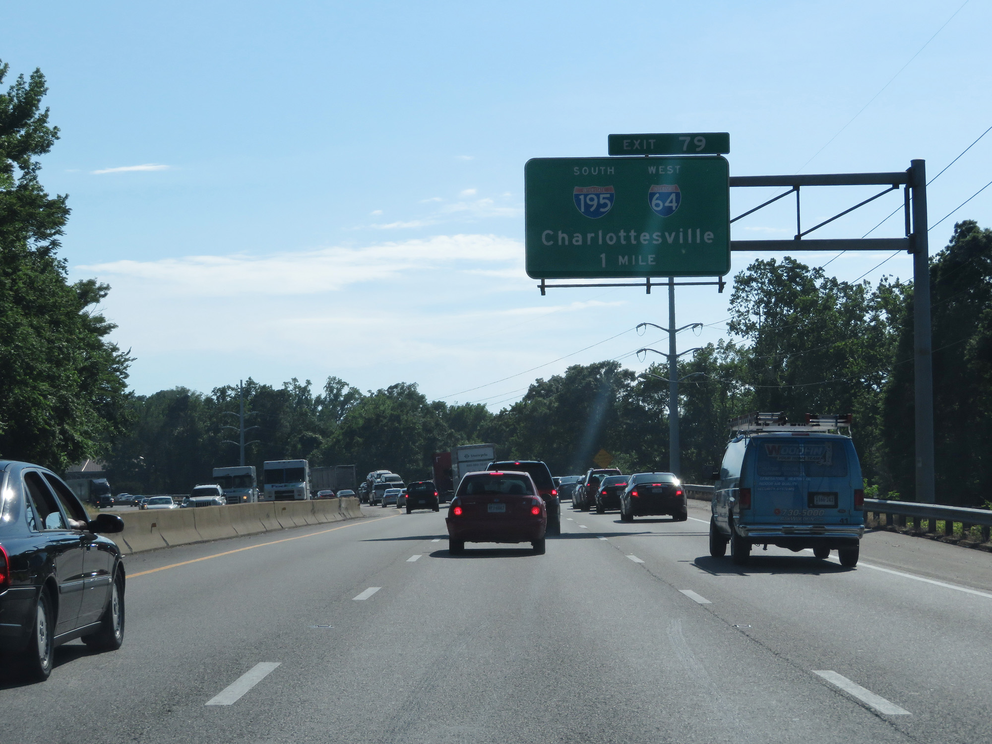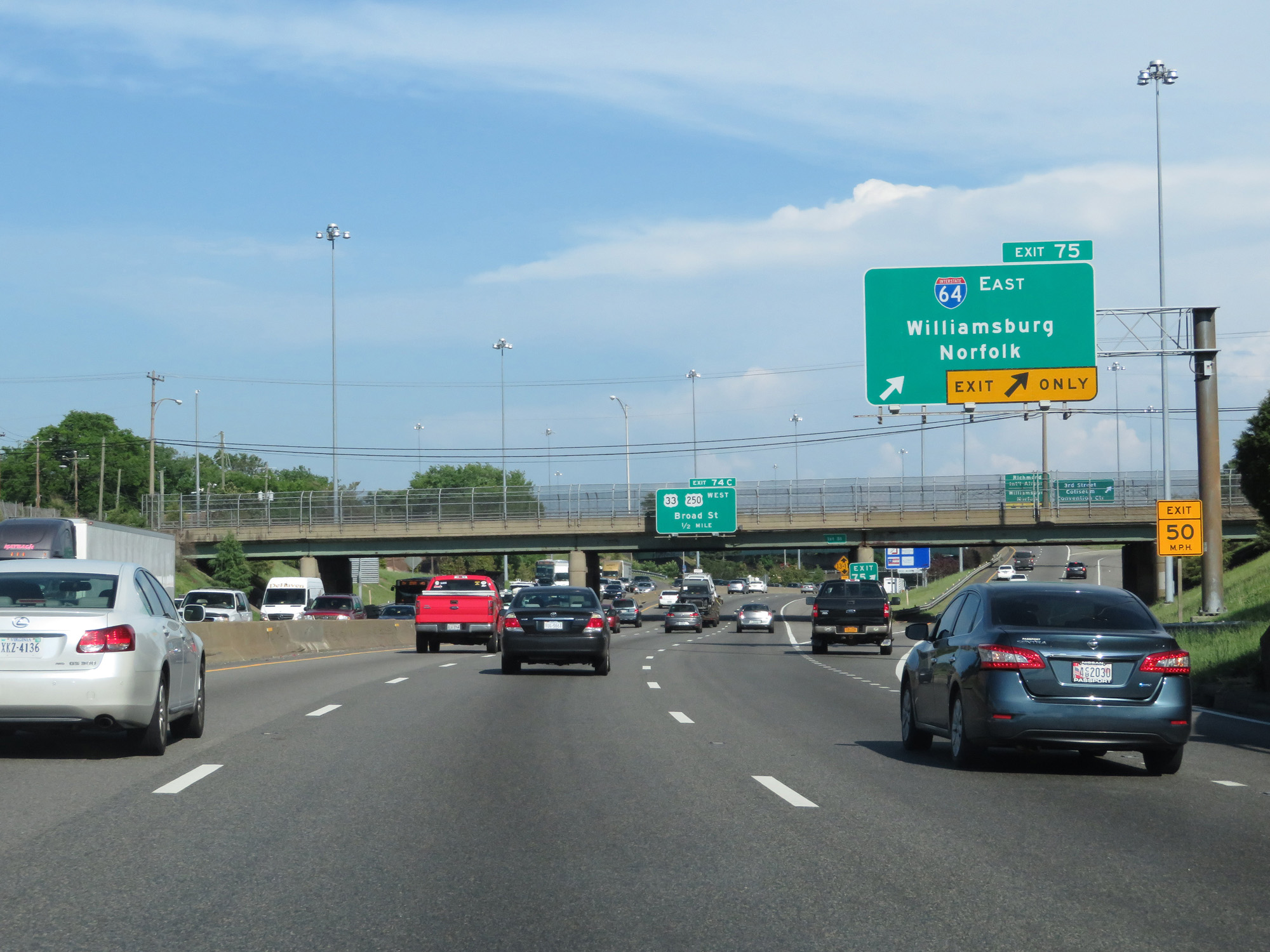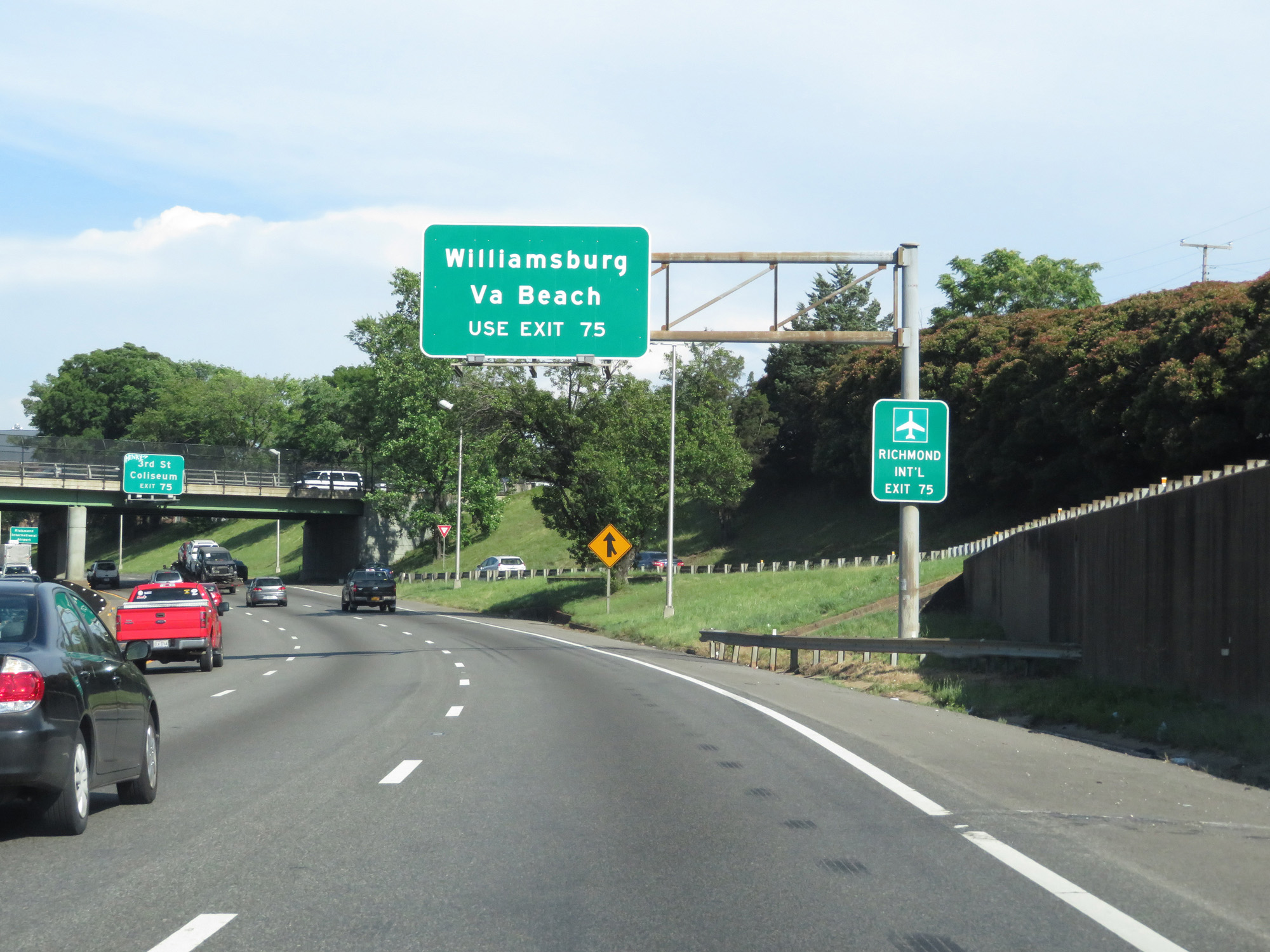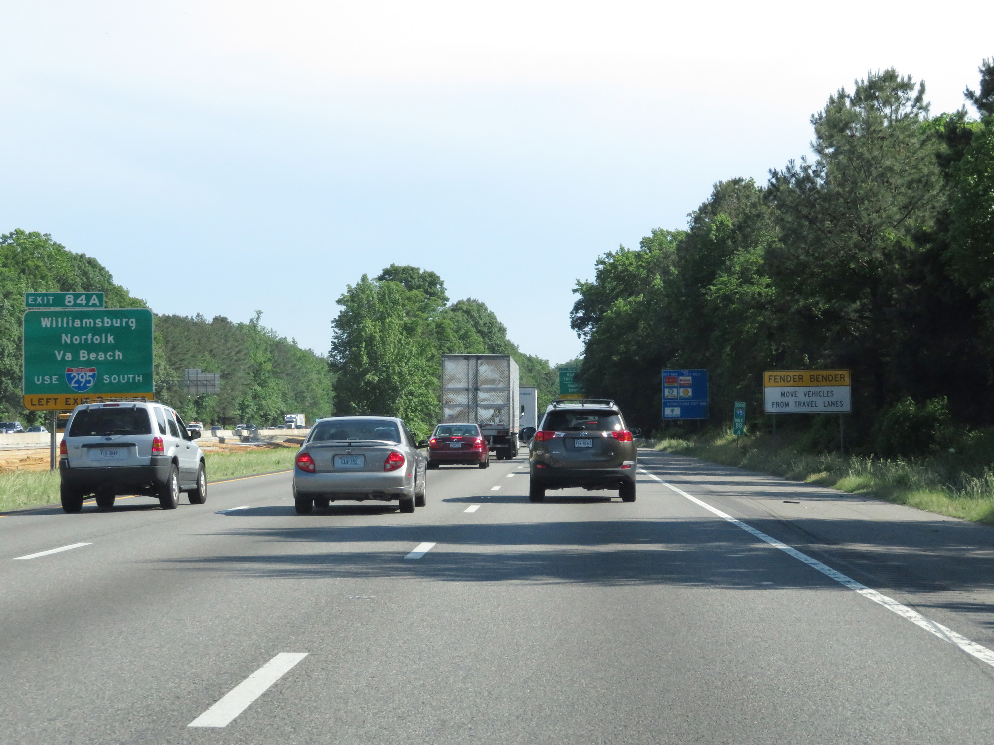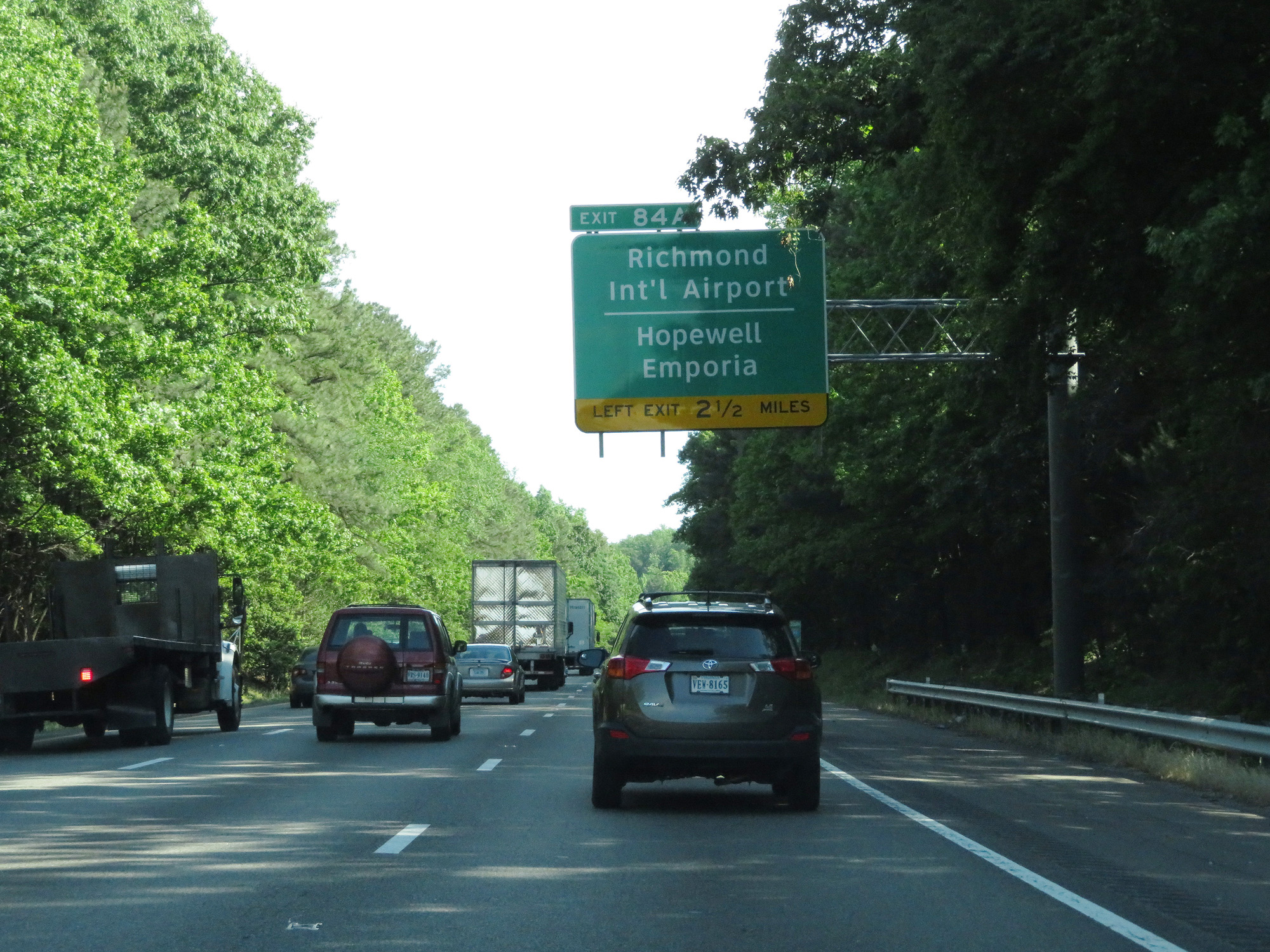 Stay on Interstate 95 South to get to US 460 East toward Norfolk. (Photo taken 5/19/17). |